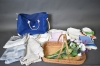 598. Parti textilier, korg & konstblommor