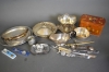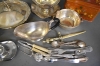 774. Parti metall, bl.a såsskål & karott med lock, största diameter 29 cm