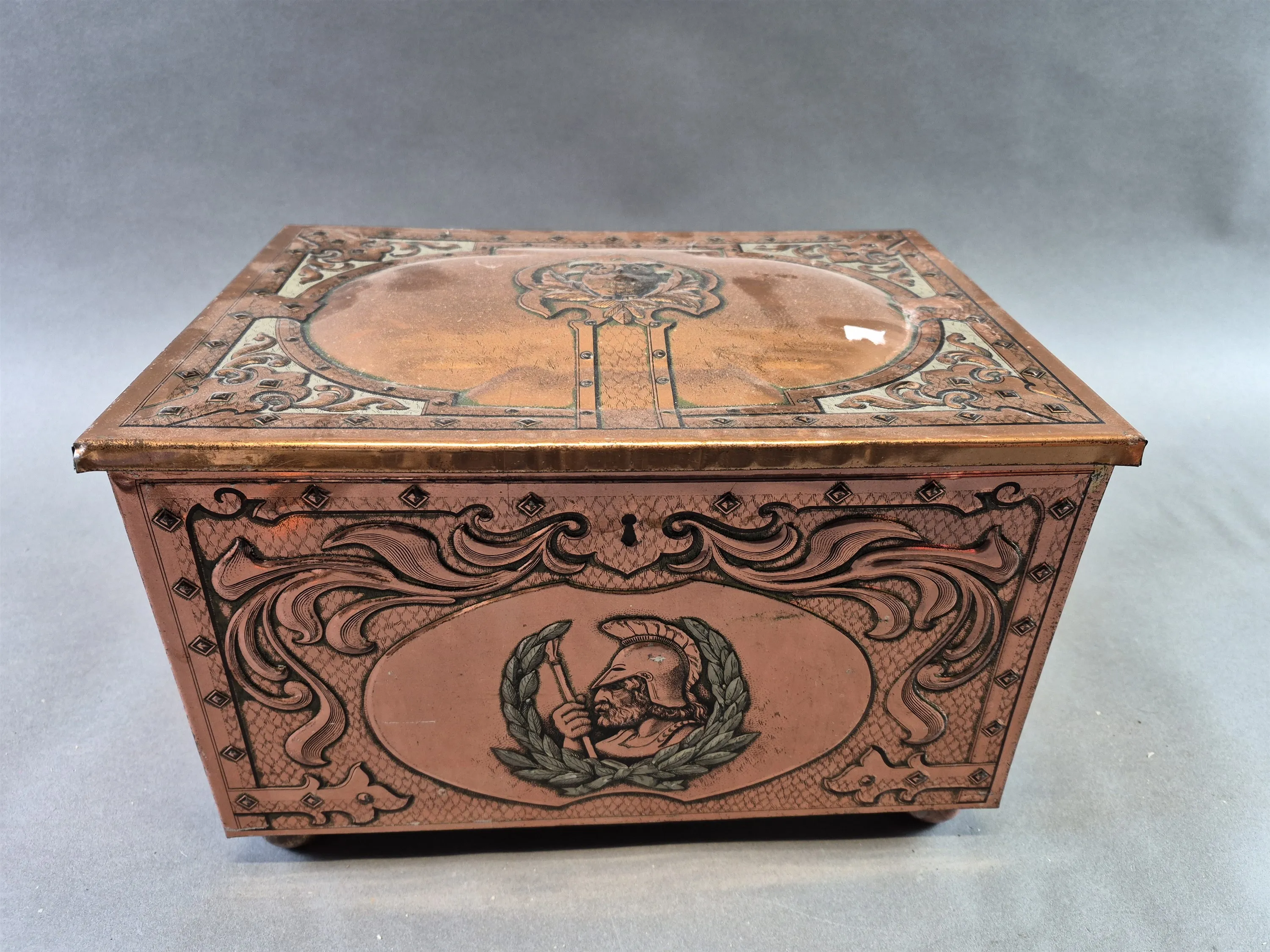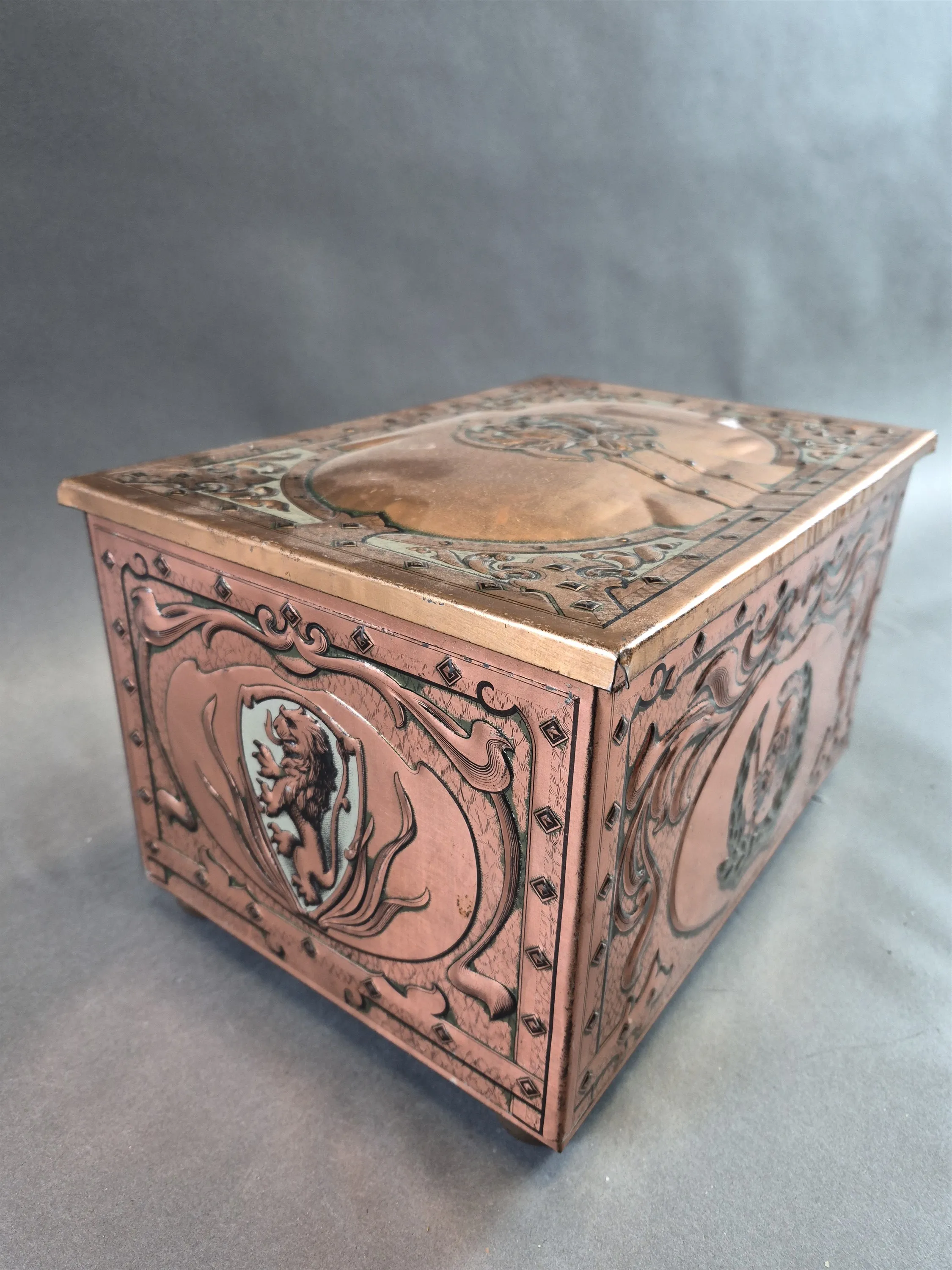 20236. Äldre plåtburk, längd 32 cm