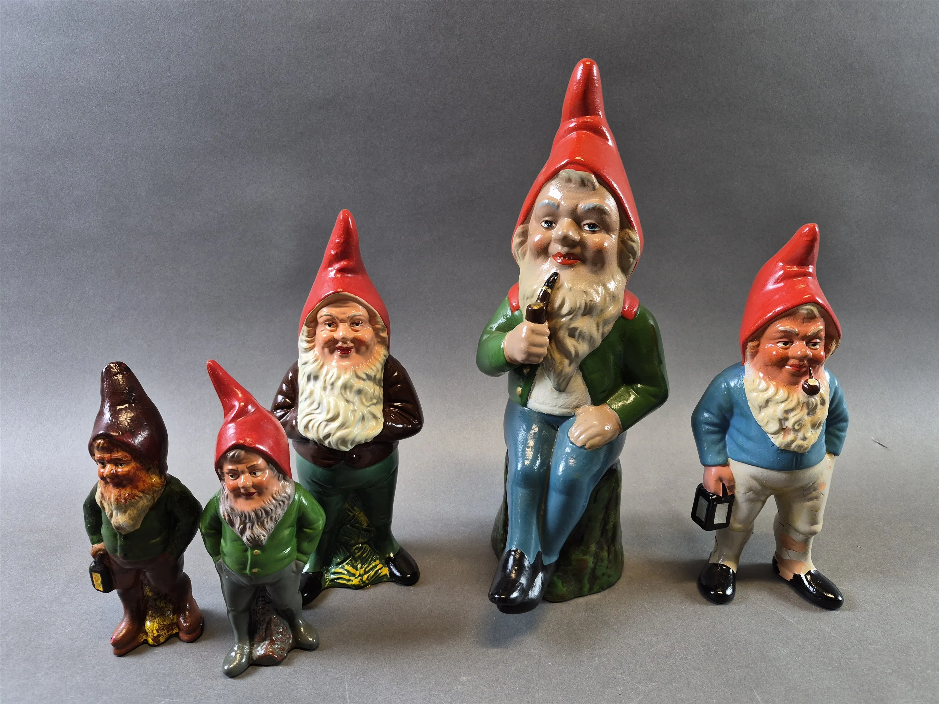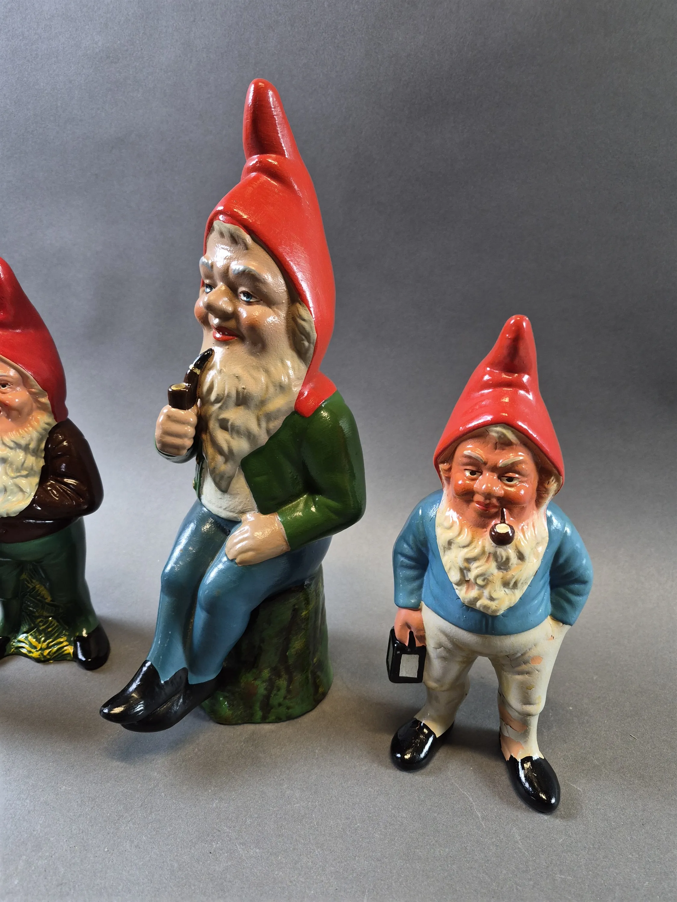 20513. Äldre tomtefiguriner, keramik, färgsläpp, högsta höjd 35 cm