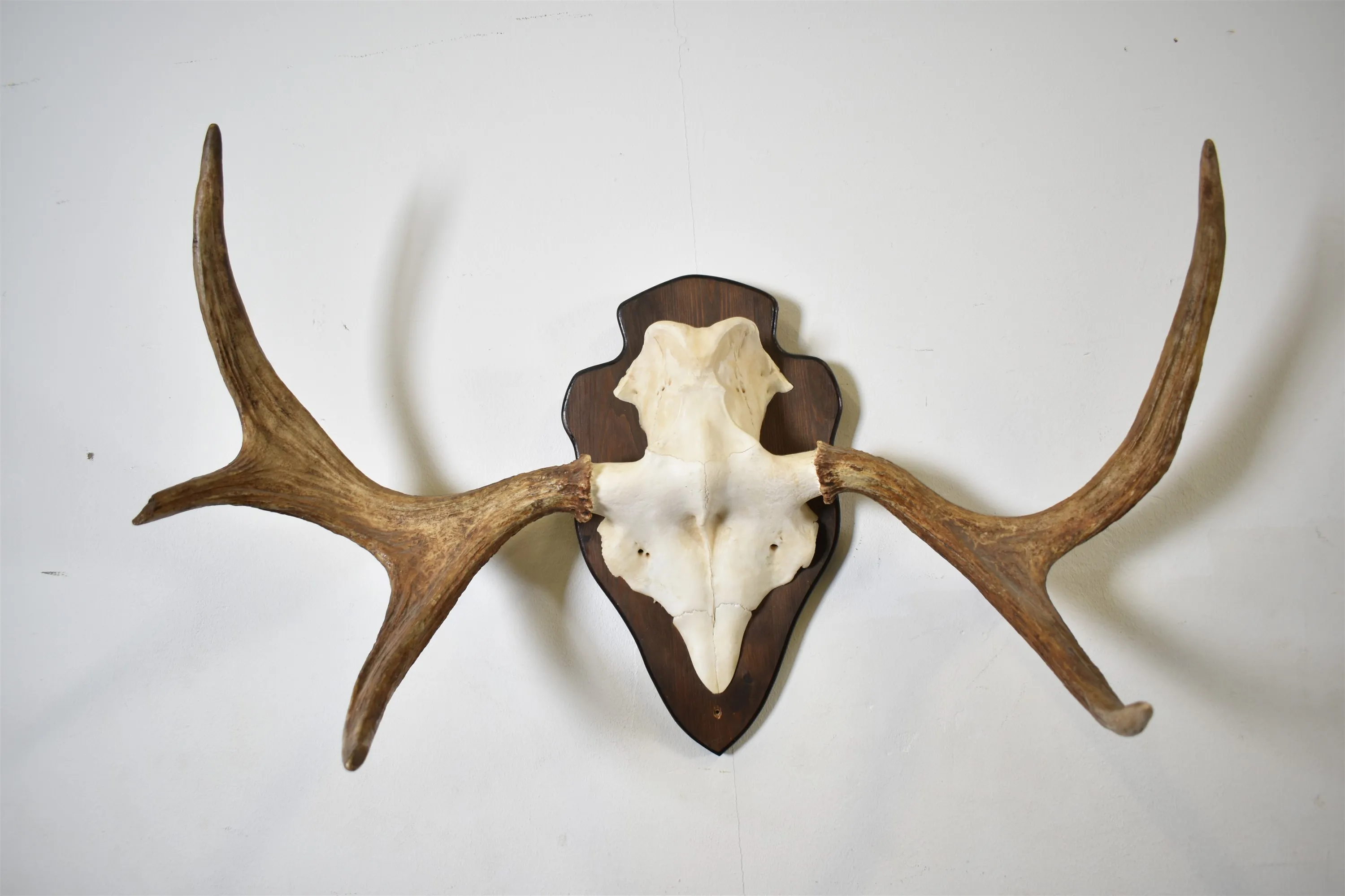 16412. Älghorn på träplatta, bredd 80 cm