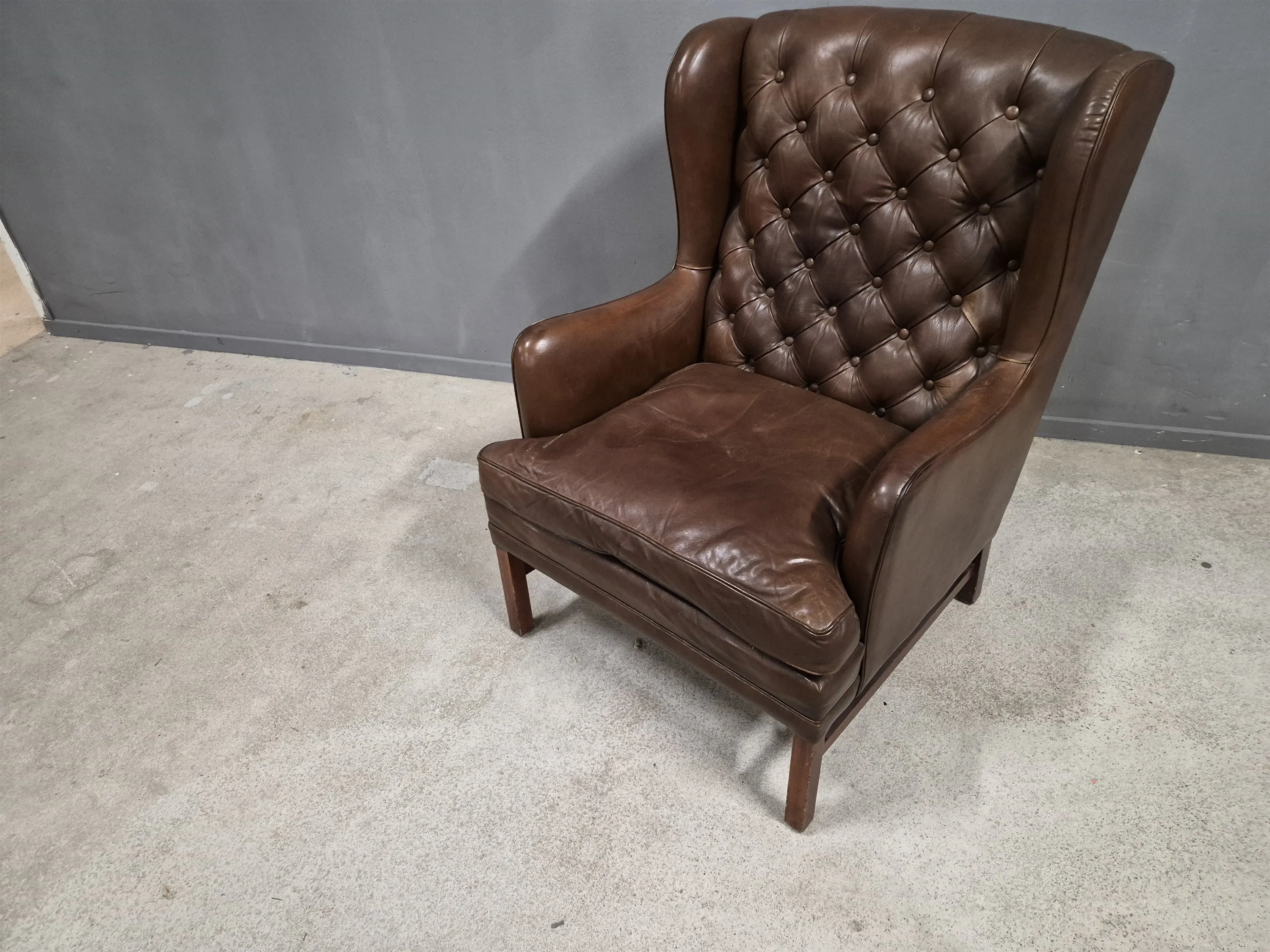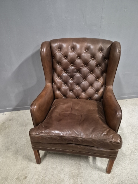 17983. Öronlappsfåtölj skinn höjd 100 cm