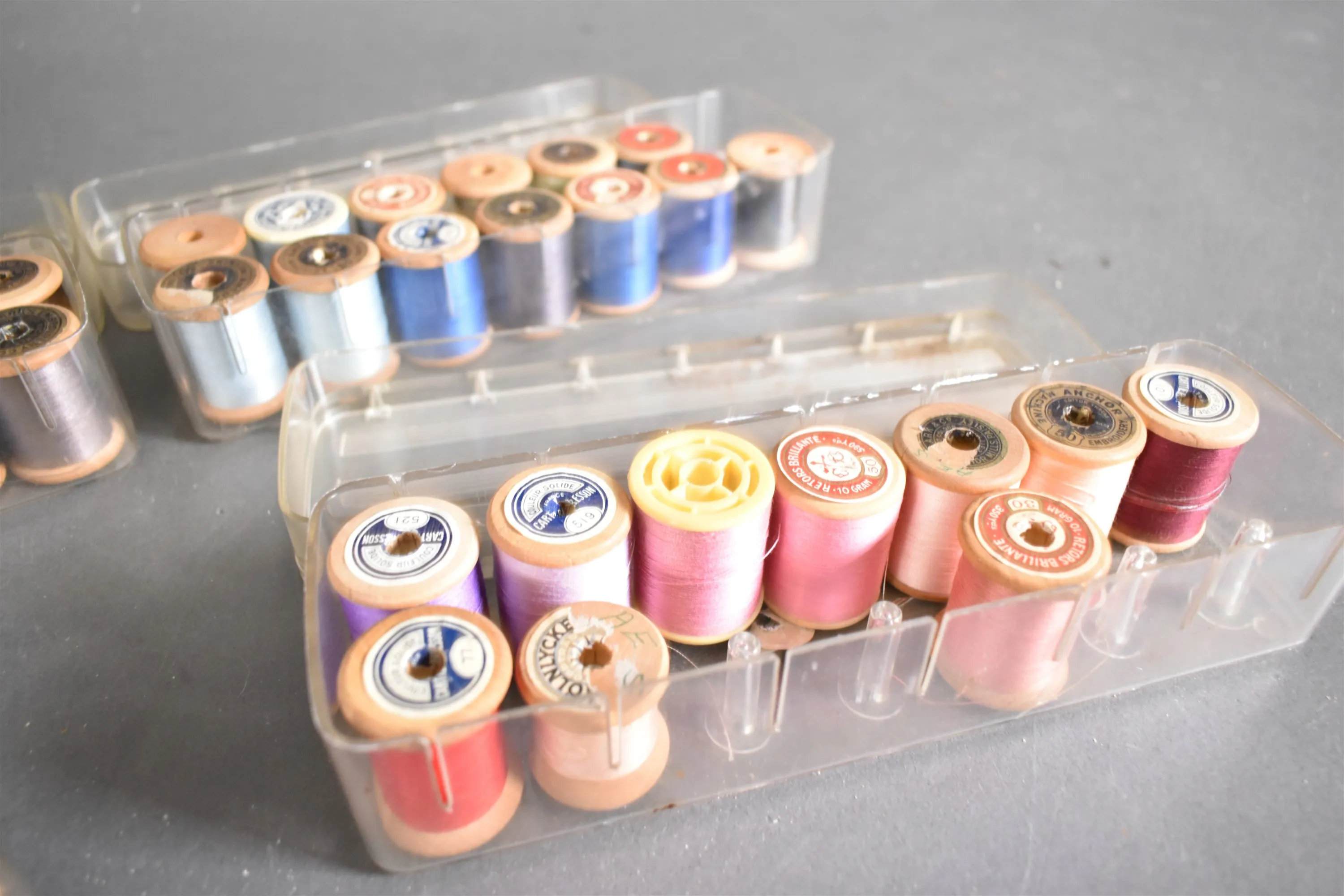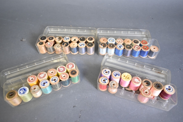 12392. 4 lådor med äldre trådrullar höjd 4 cm