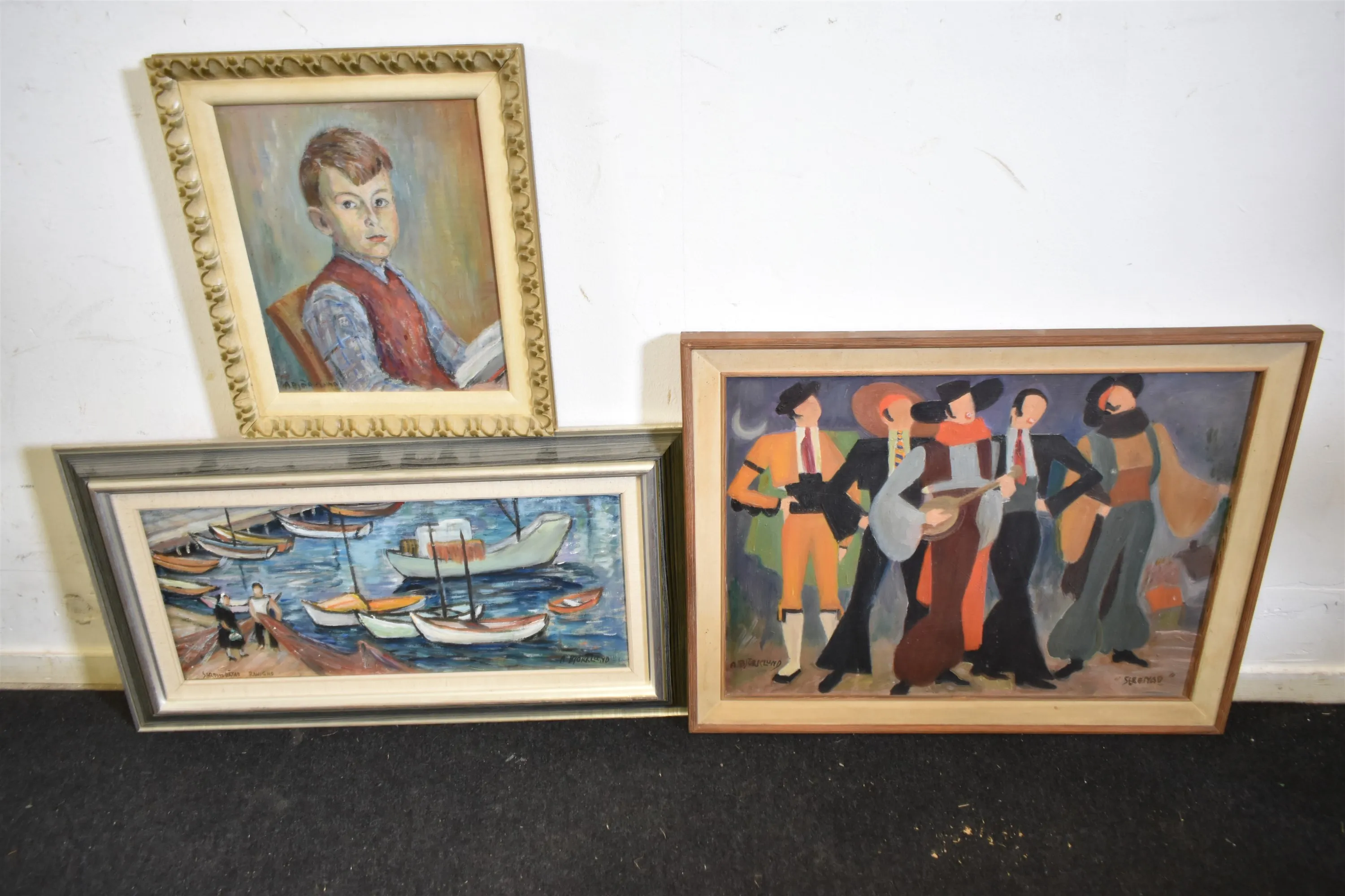 15594. A.Björklund, oljor 3 st, största mått 69 x 55 cm
