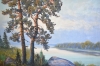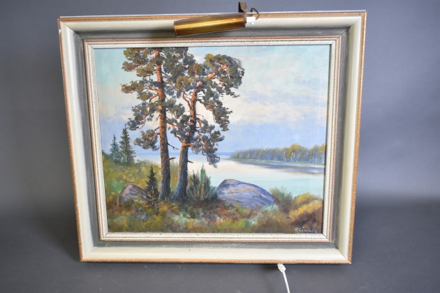13250. A.Lönnholm olja på duk, Träd vid sjö, mått 72 x 82 cm