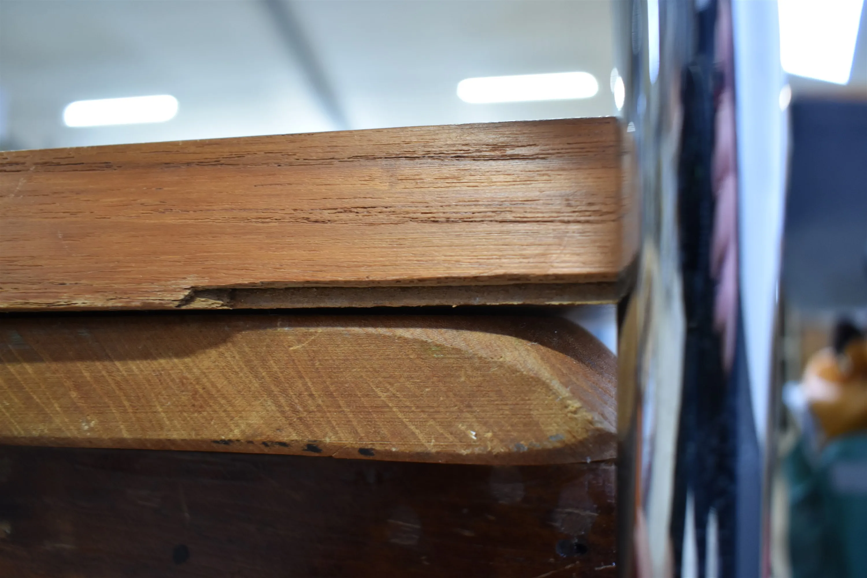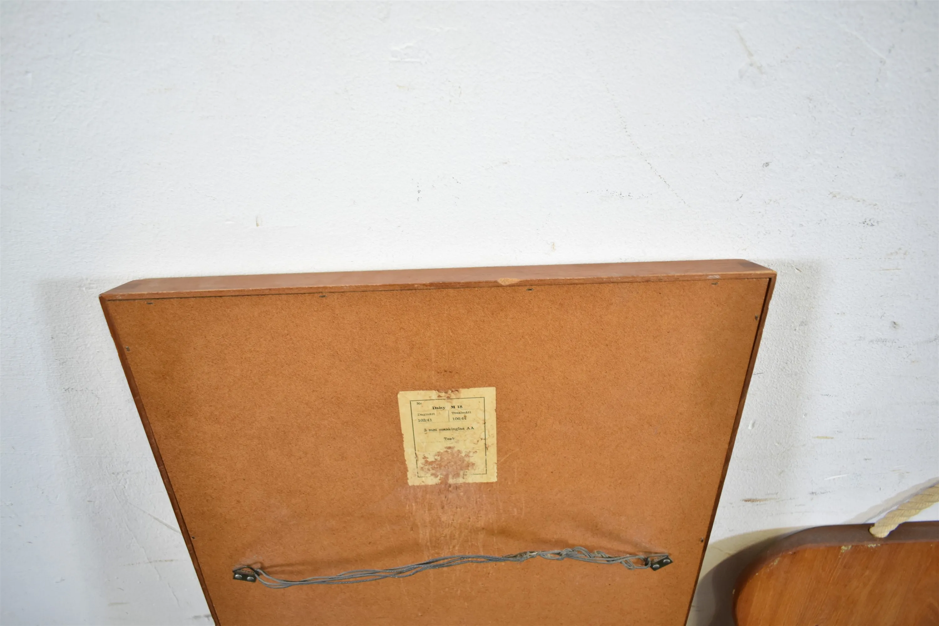 15214. Amerikaur, spegel teak och träbricka, mått på spegel 107x43 cm