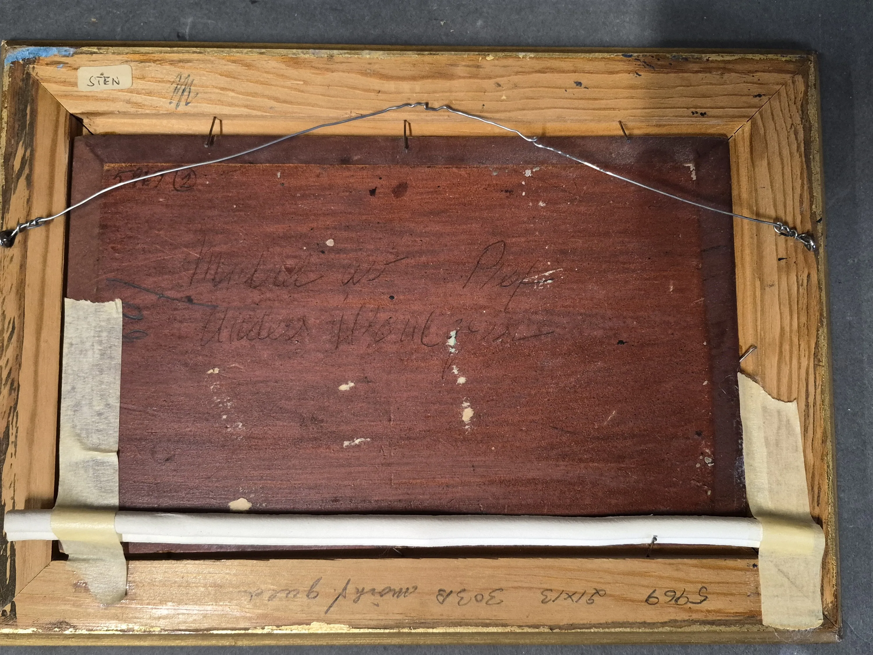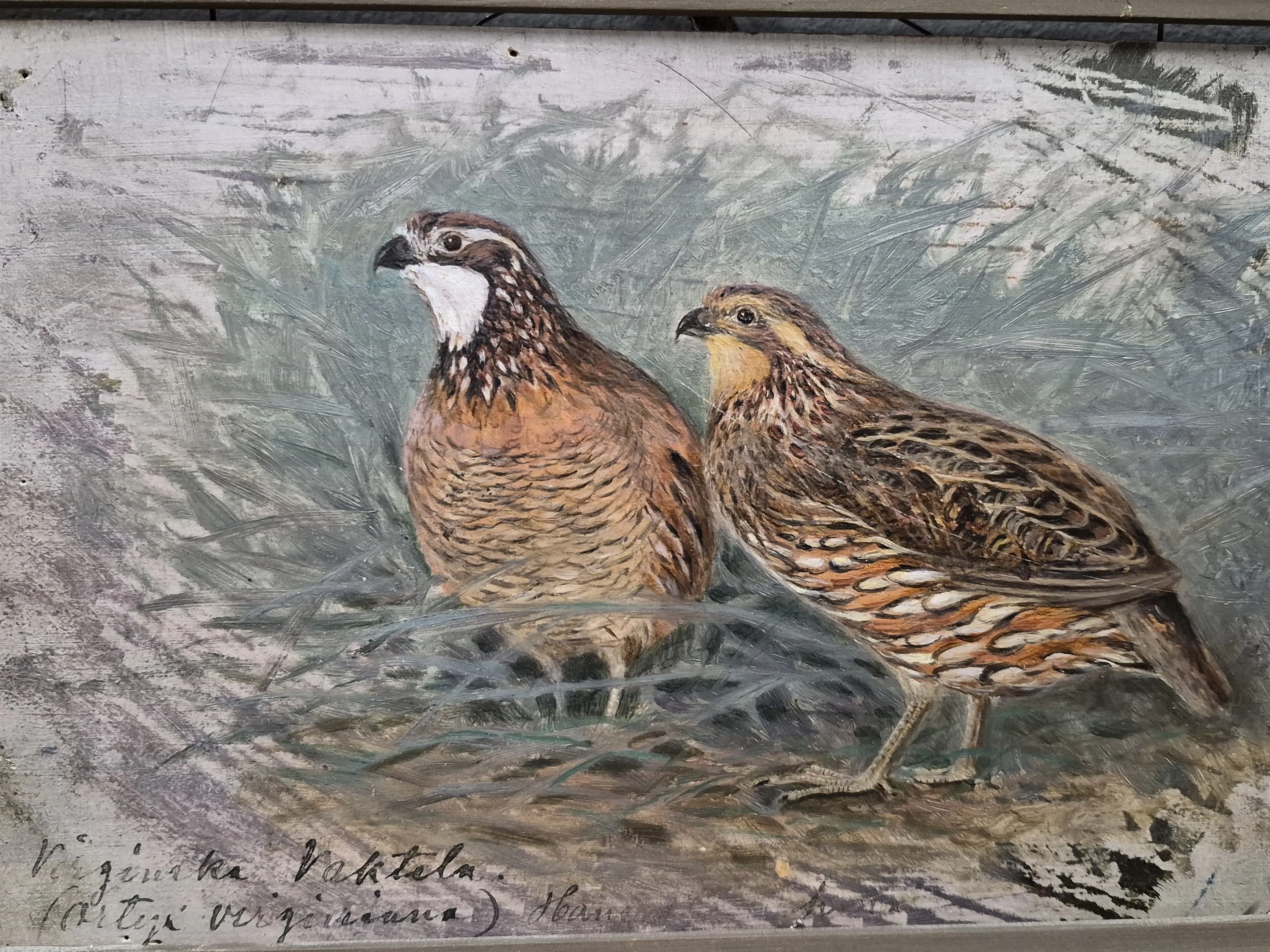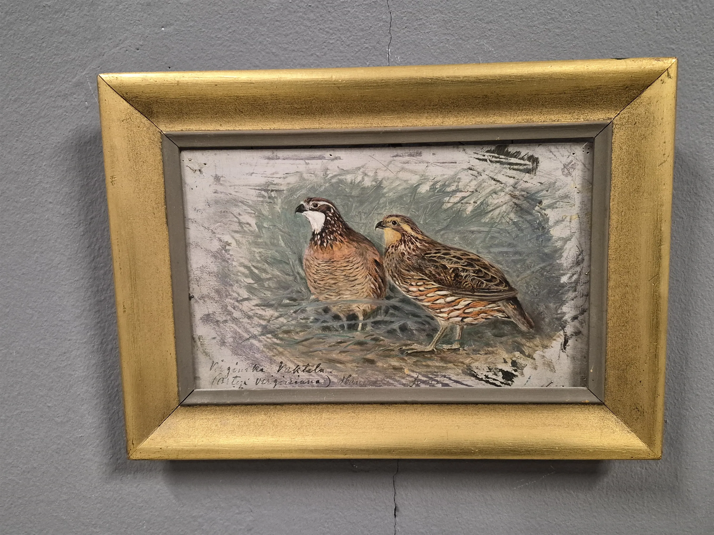 19401. Anders Wahlgren, olja på träplatta, "Vaktlar", atergo, mått 20 x 28 cm