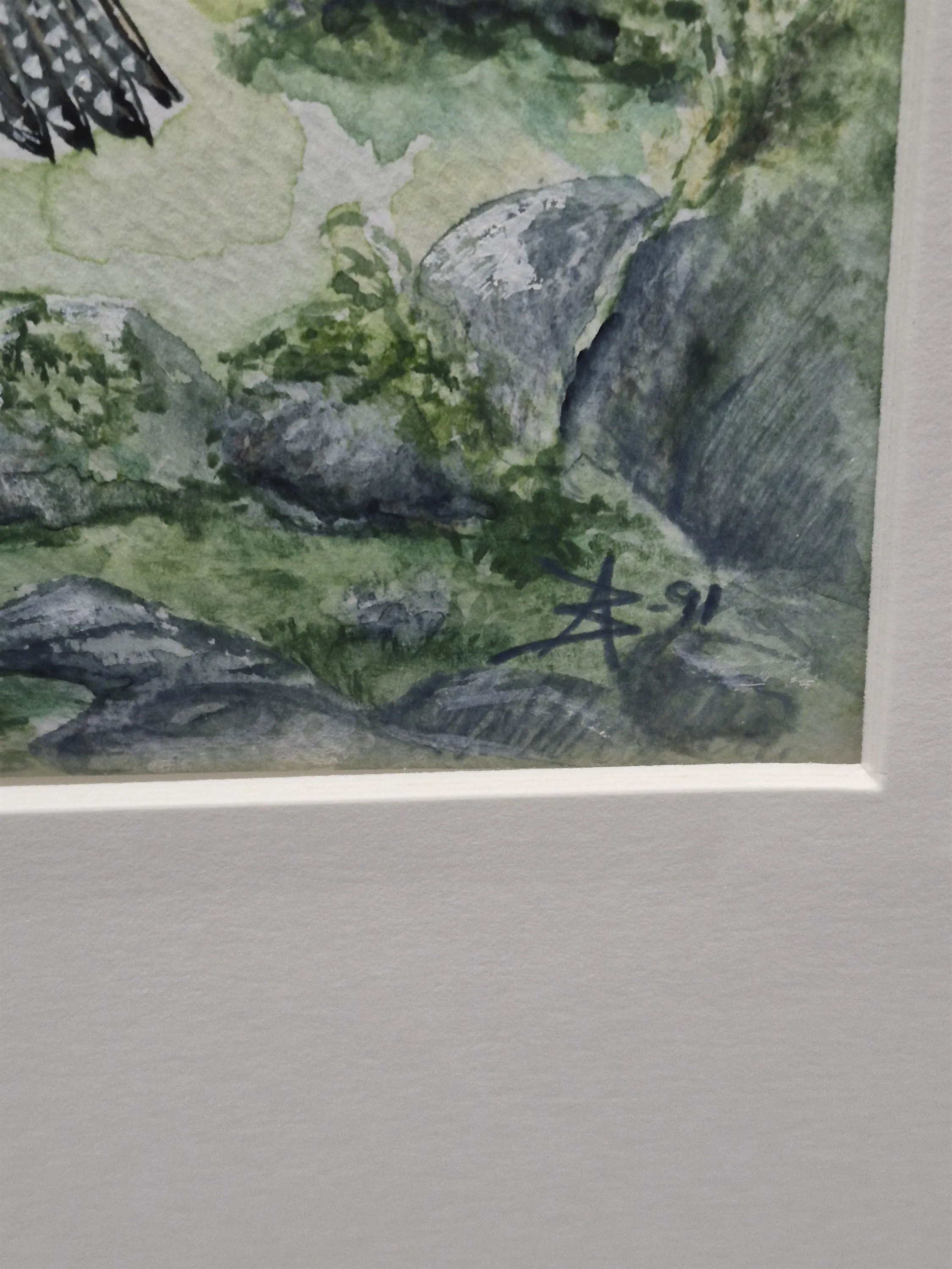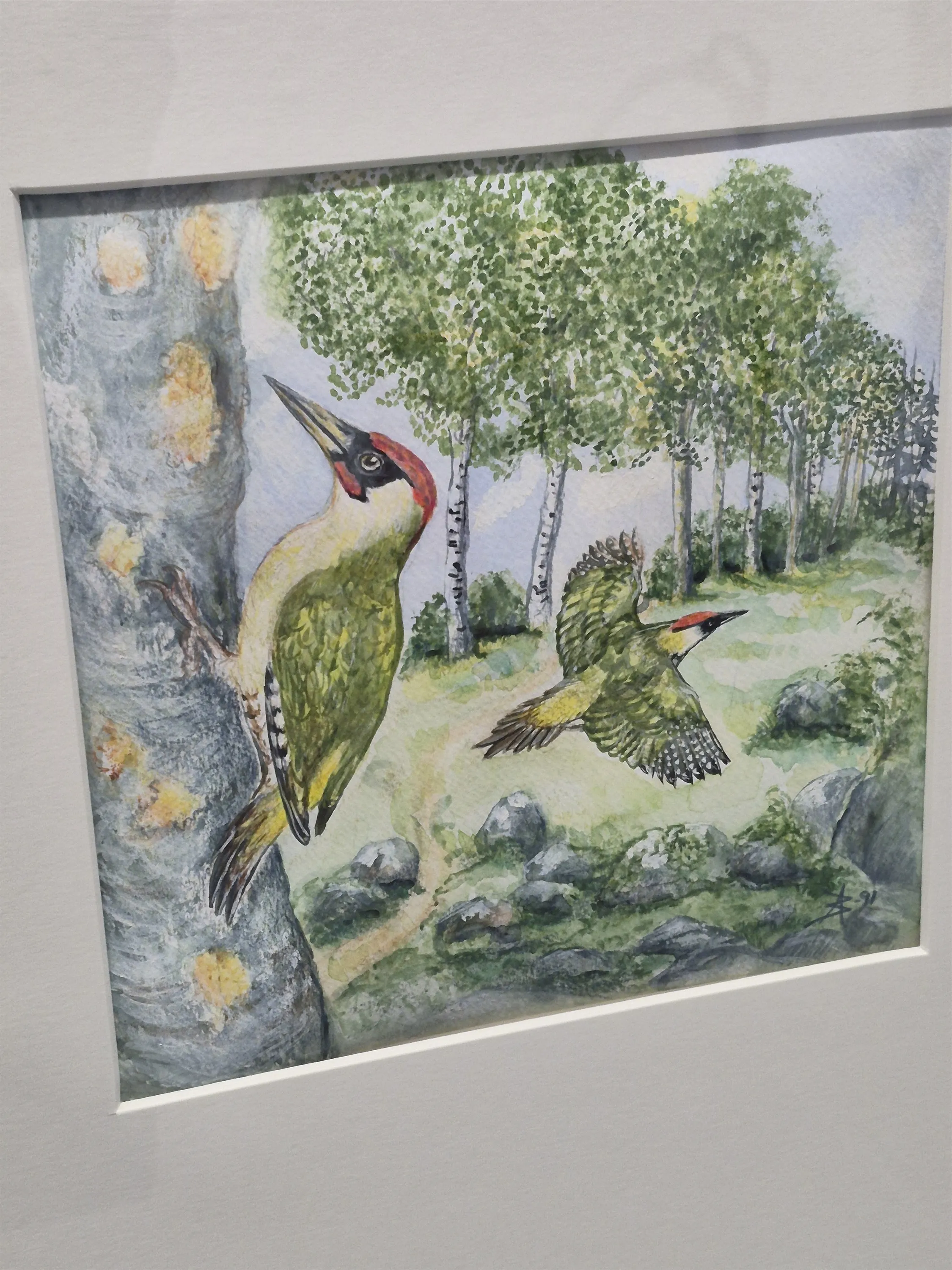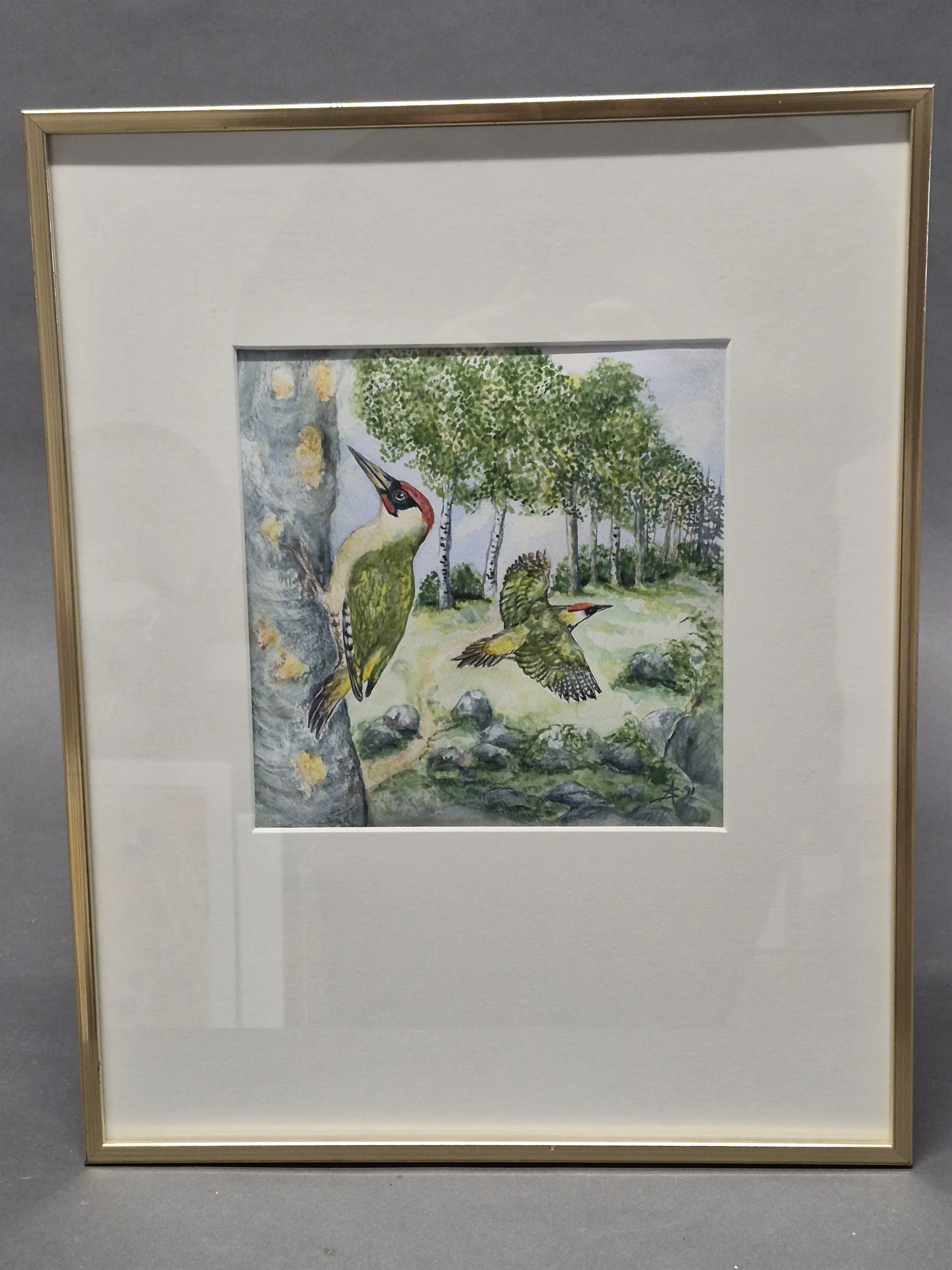 19228. Annika Blom akvarell, "Gröngöling", mått 41 x 51 cm