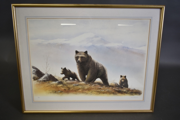 16657. Arne Anderson litografi, "Björn med ungar", yttermått 70x55 cm