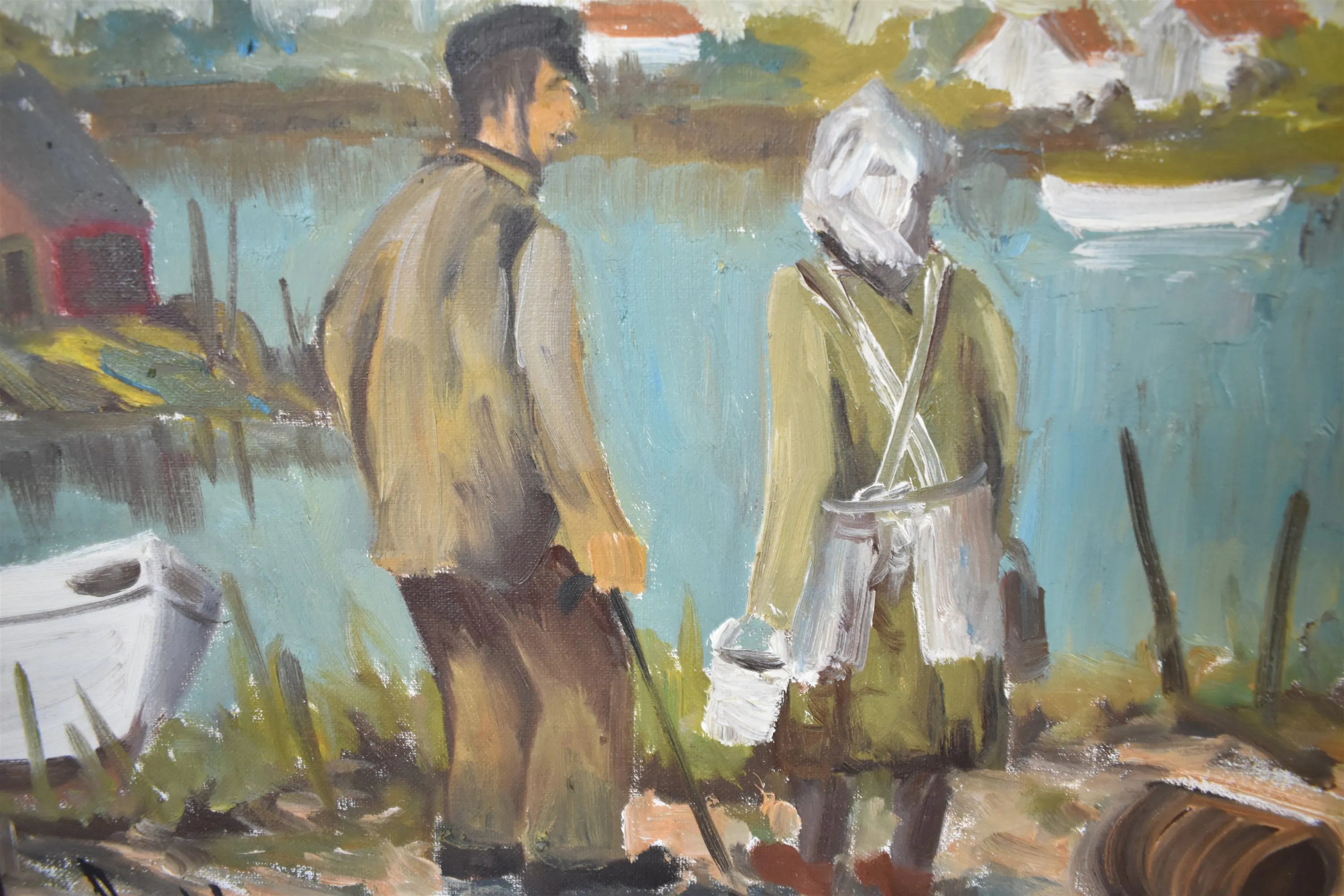 15406. Arne Wahlström, olja på duk, "Fiskarpar", mått 54x 63 cm70 x 60 cm