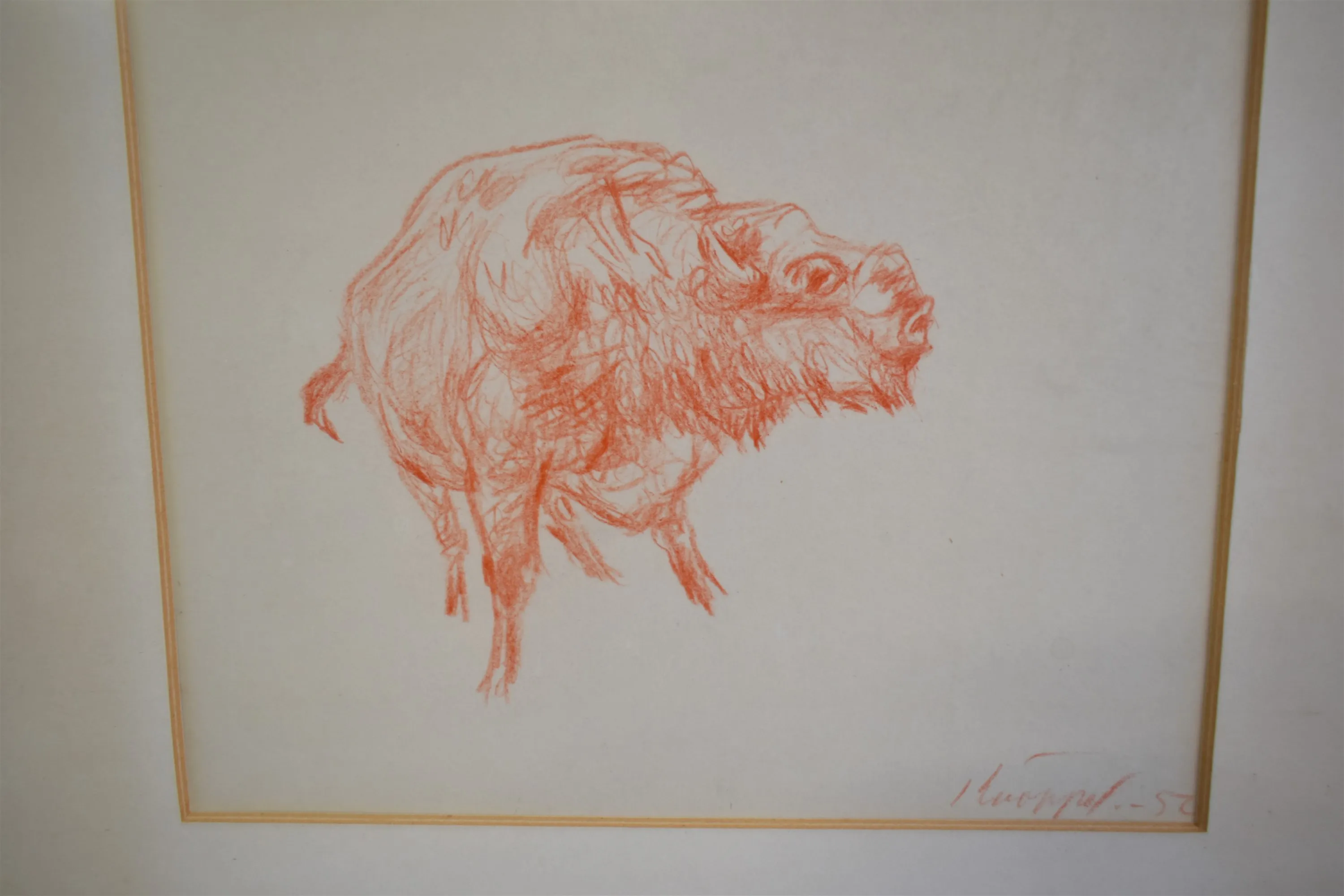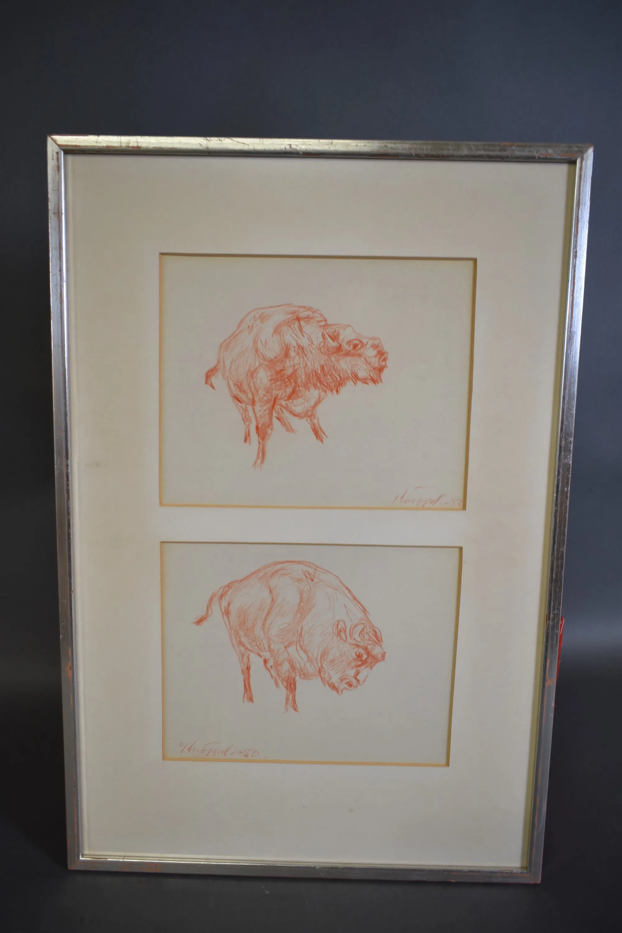 16555. Arvid Knöppel rödkrita, "Bisonoxar" största mått 43 x 64 cm