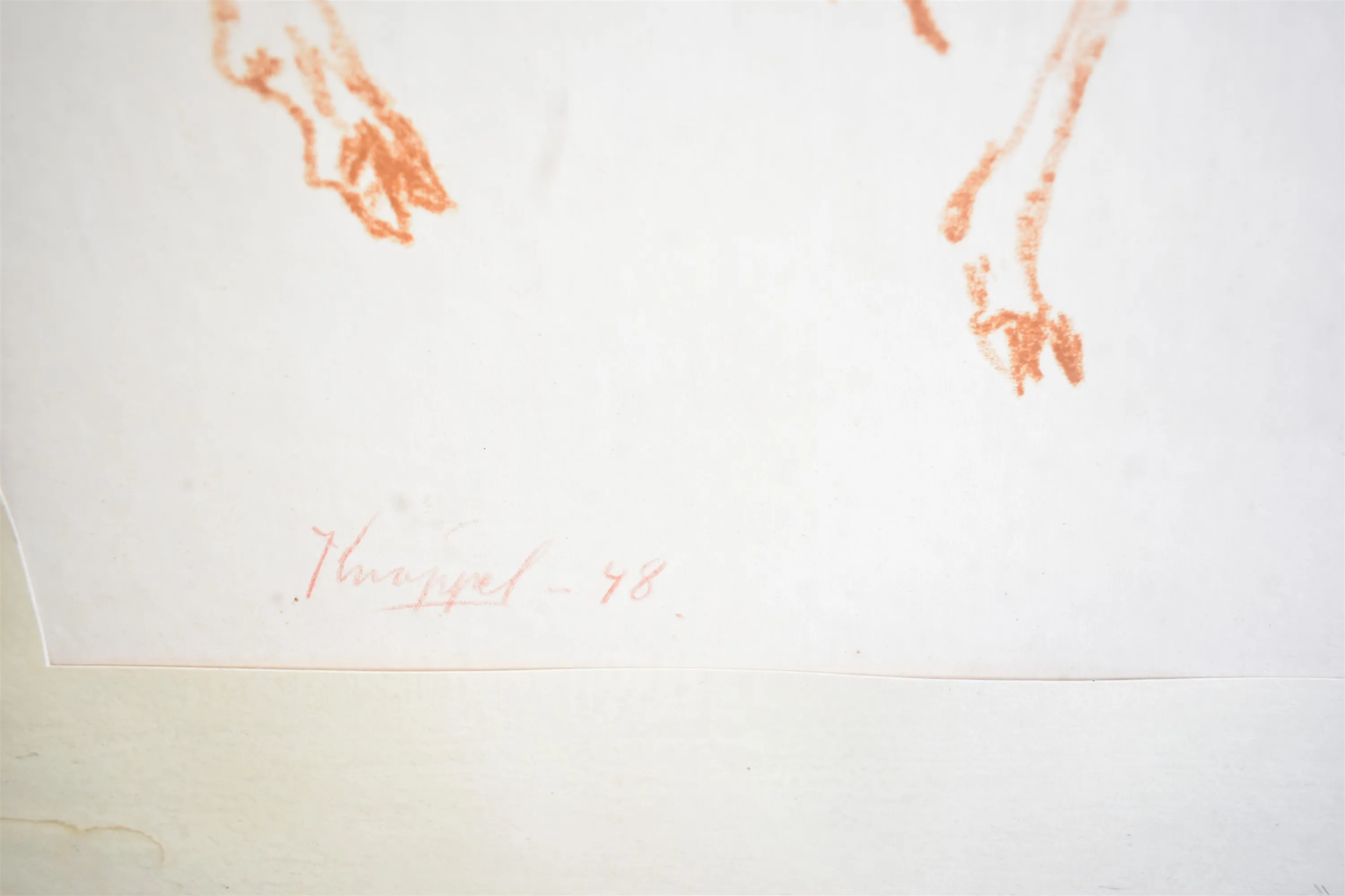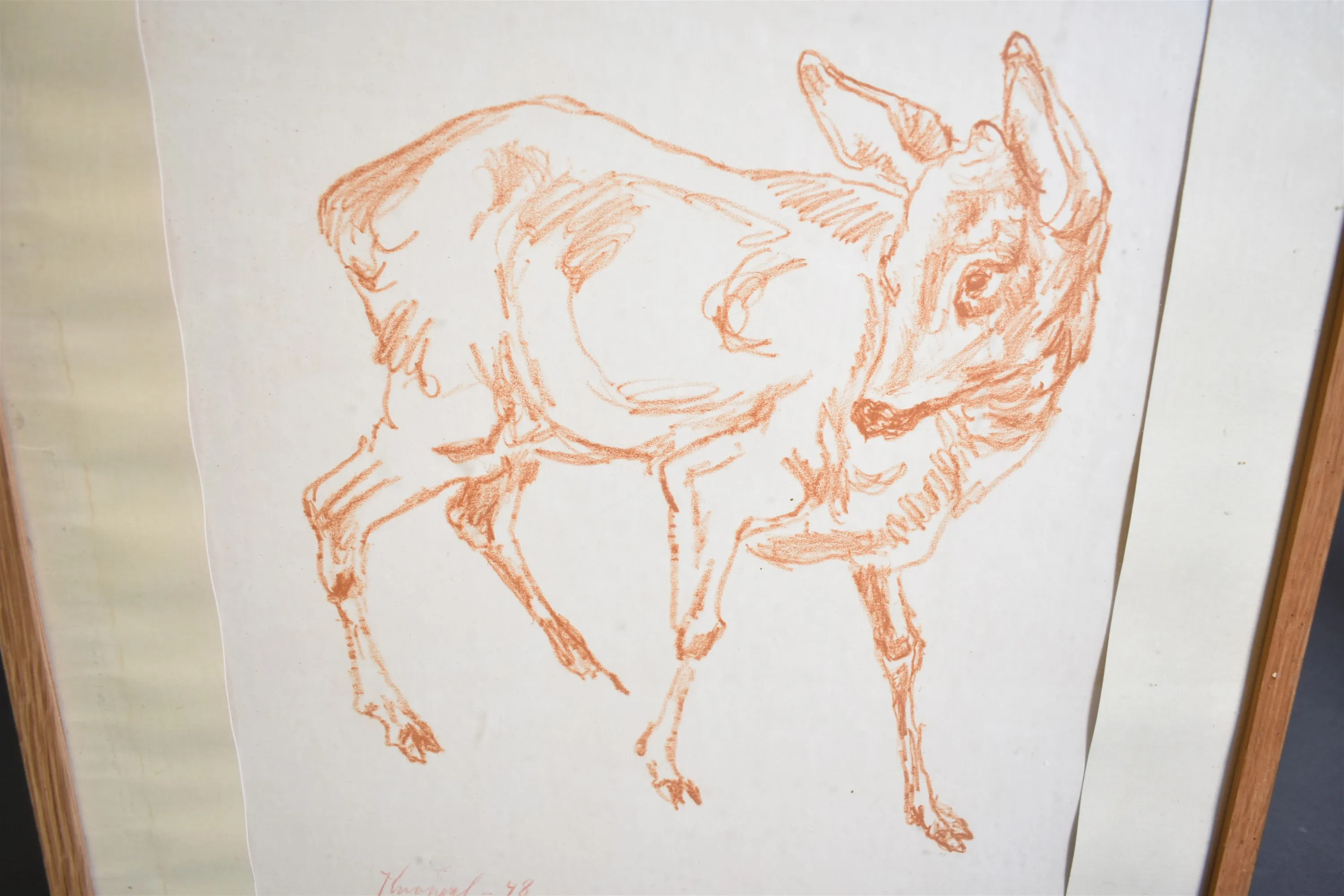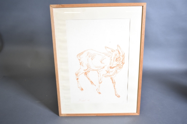 14182. Arvid Knöppel, Teckning, Rådjur, mått 64 x 49 cm