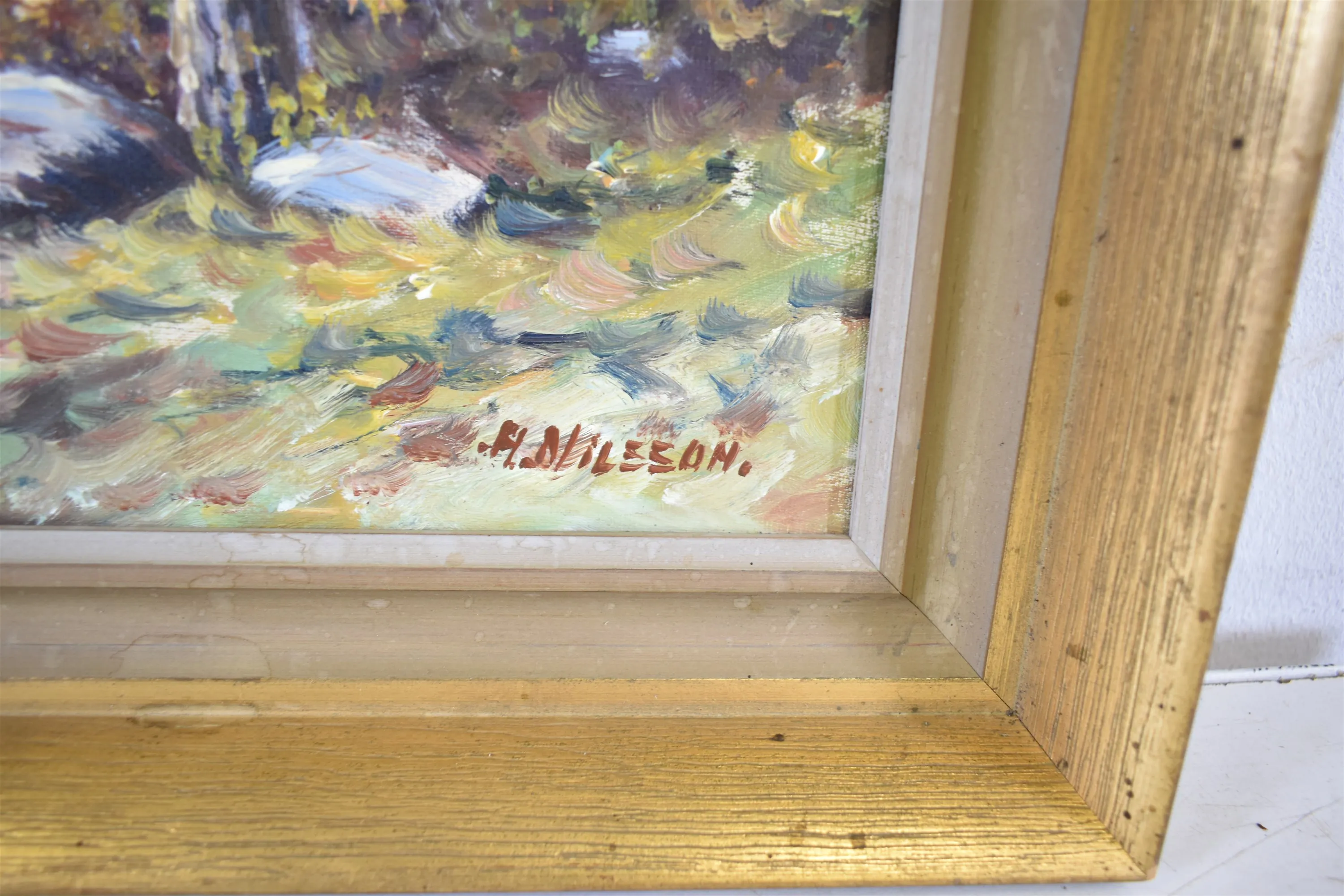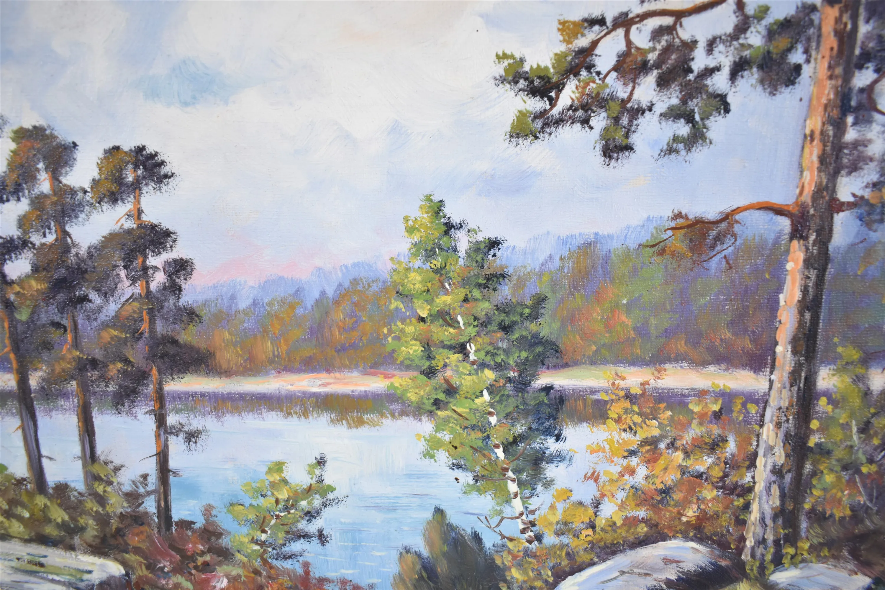 15093. Arvid Nilsson olja på duk, "Tallar vid kust", mått 61 x 53 cm
