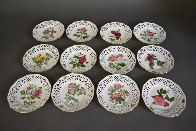12969. Assietter, 12 st Rosdekor, Schumann diameter19 cm