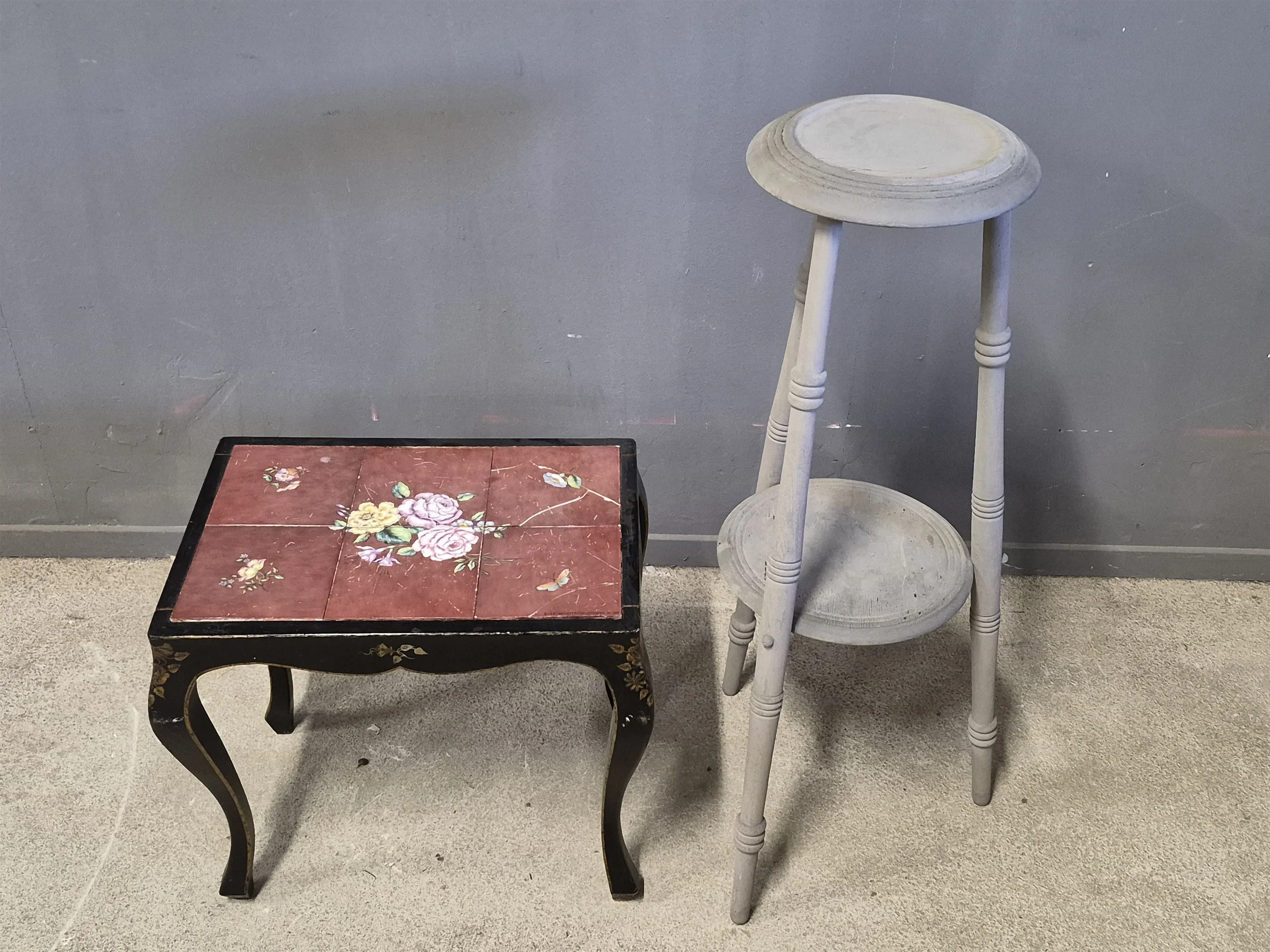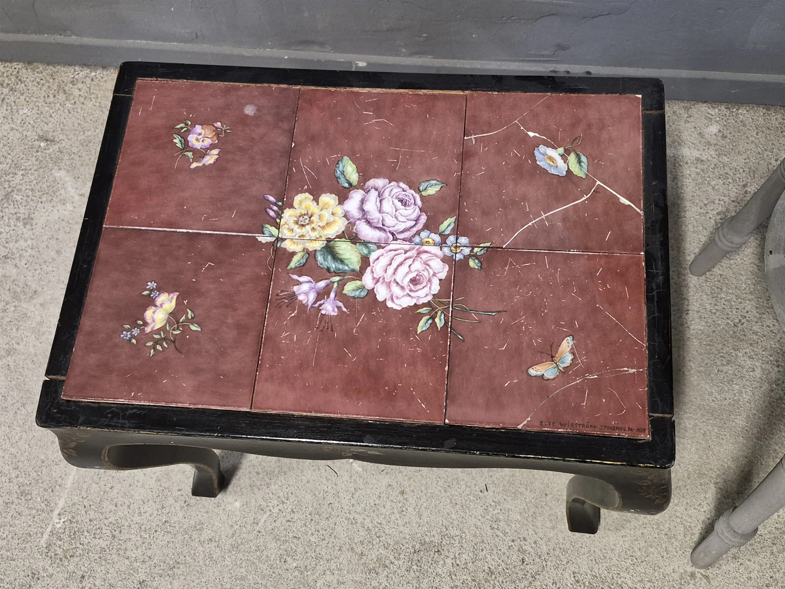 18739. Avlastningsbord, kakelskivor defekta & piedestal högsta 93 cm