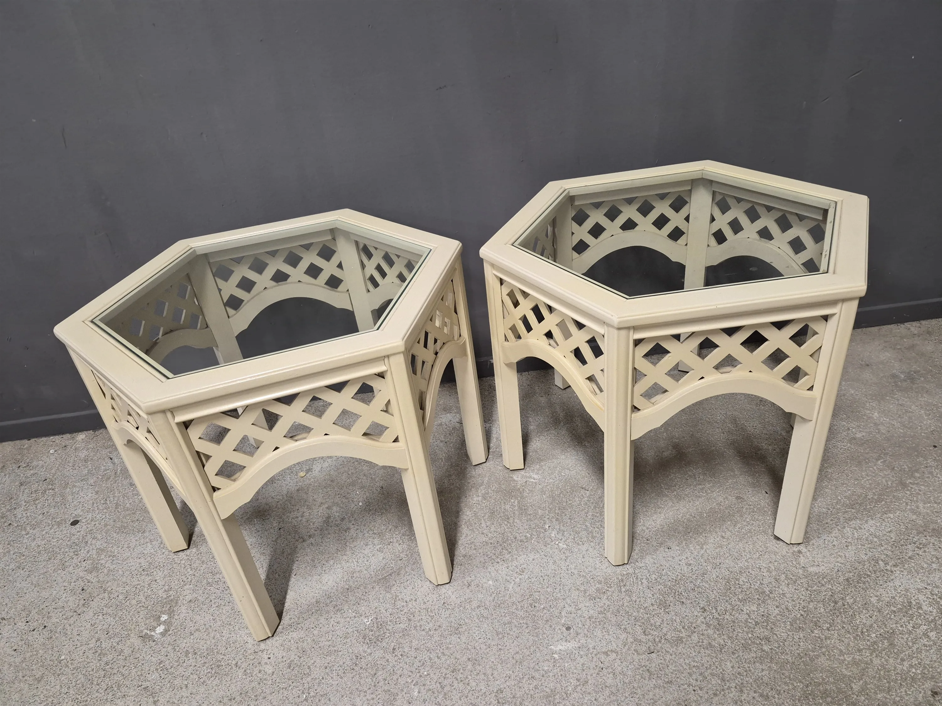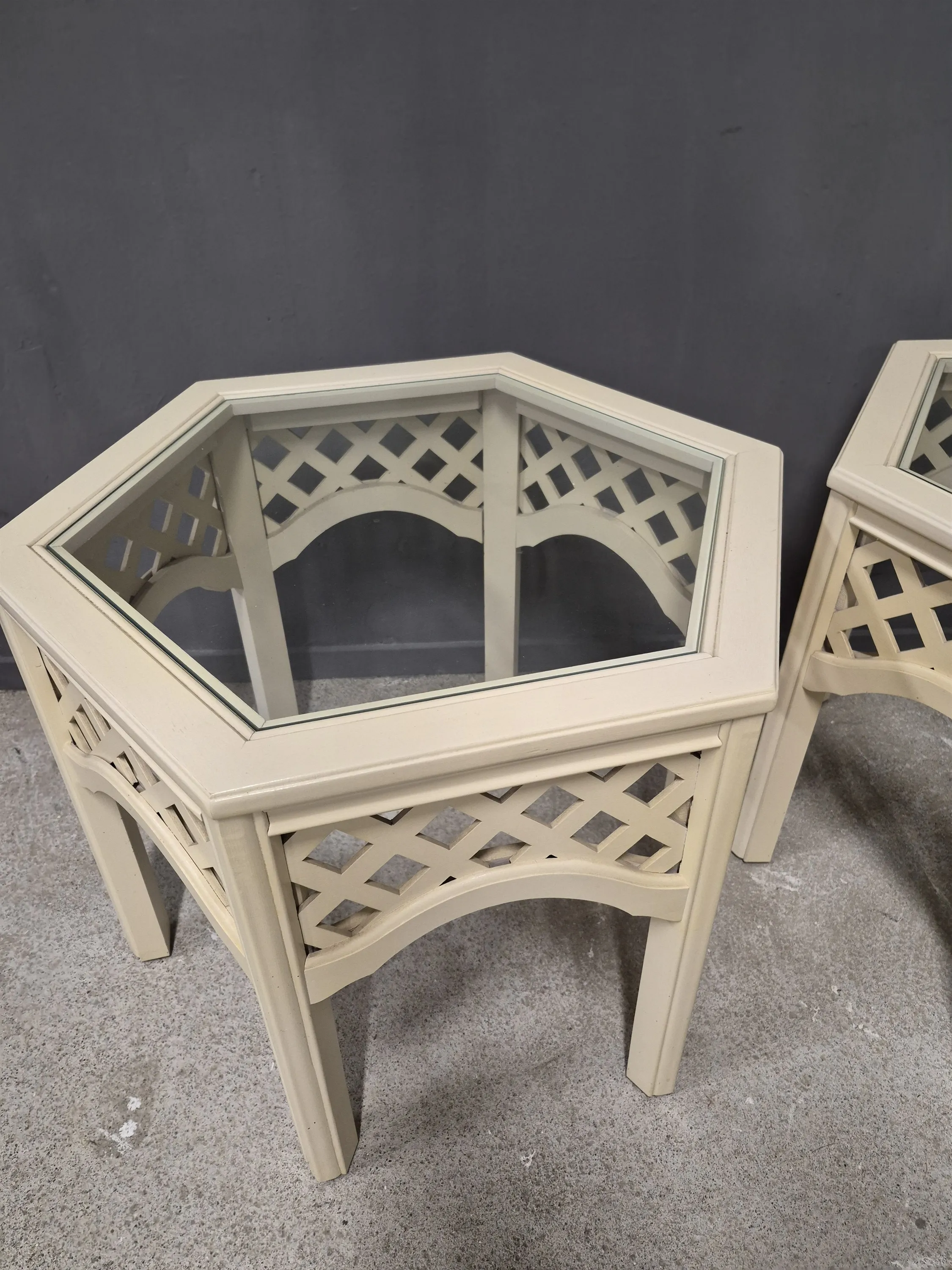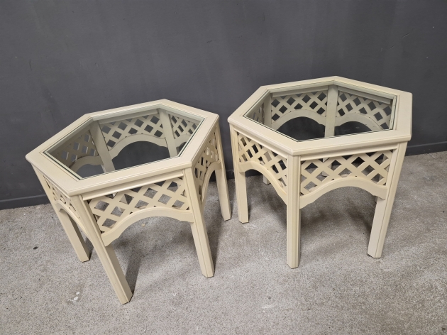 17247. Avlastningsbord med glasskiva 2 st, höjd 54 cm, längd 69 cm, bredd 60 cm