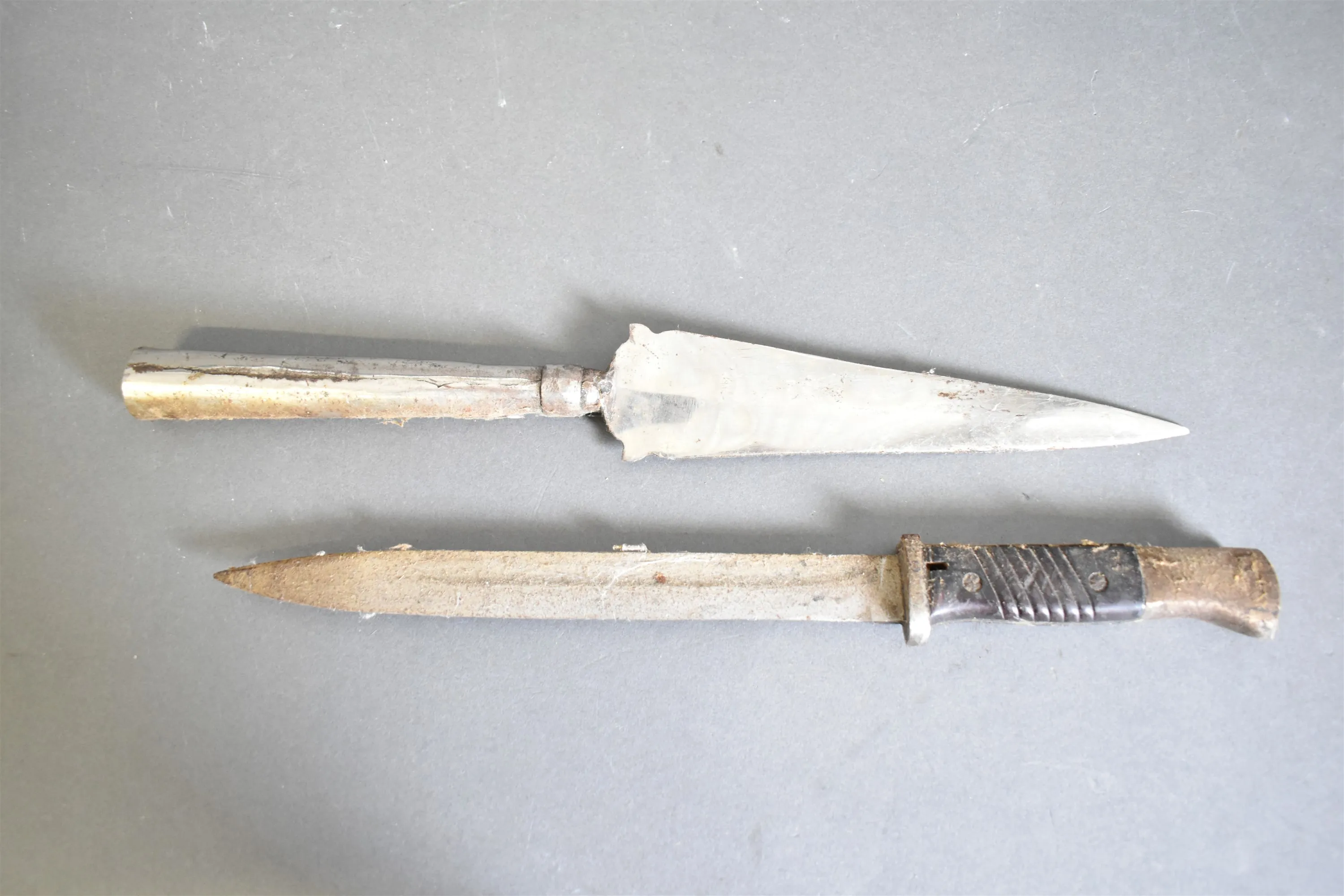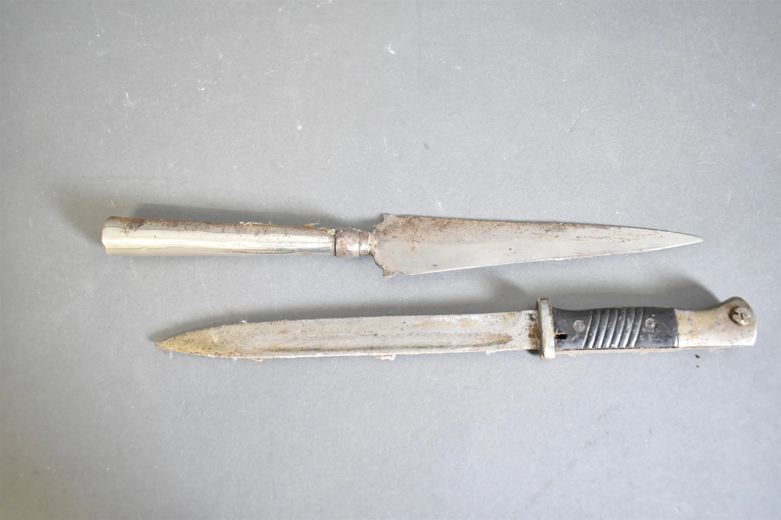 14562. Bajonett & spjutspets, rost finns, längsta 41 cm