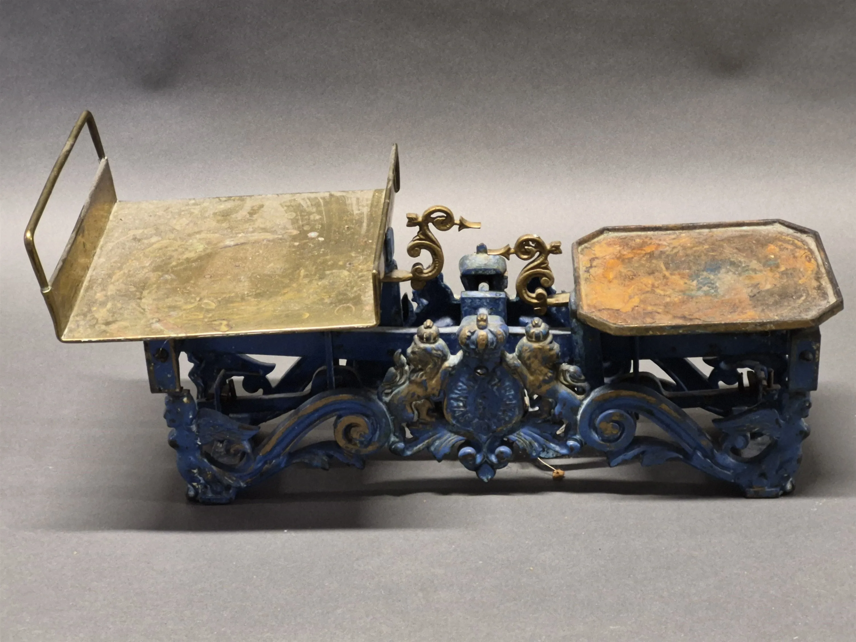 18963. Balansvåg 5 kg gjutjärn, längd 58 cm