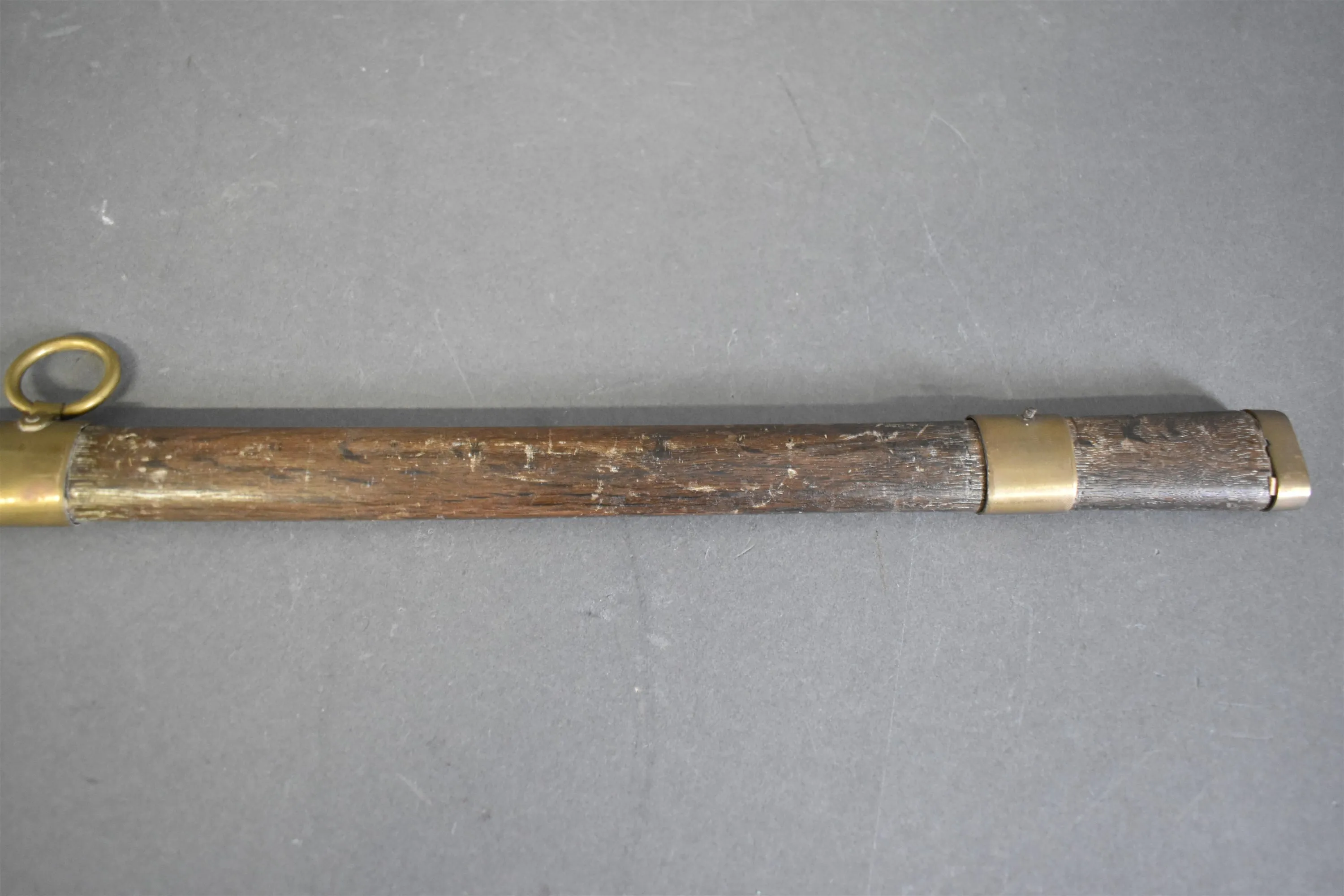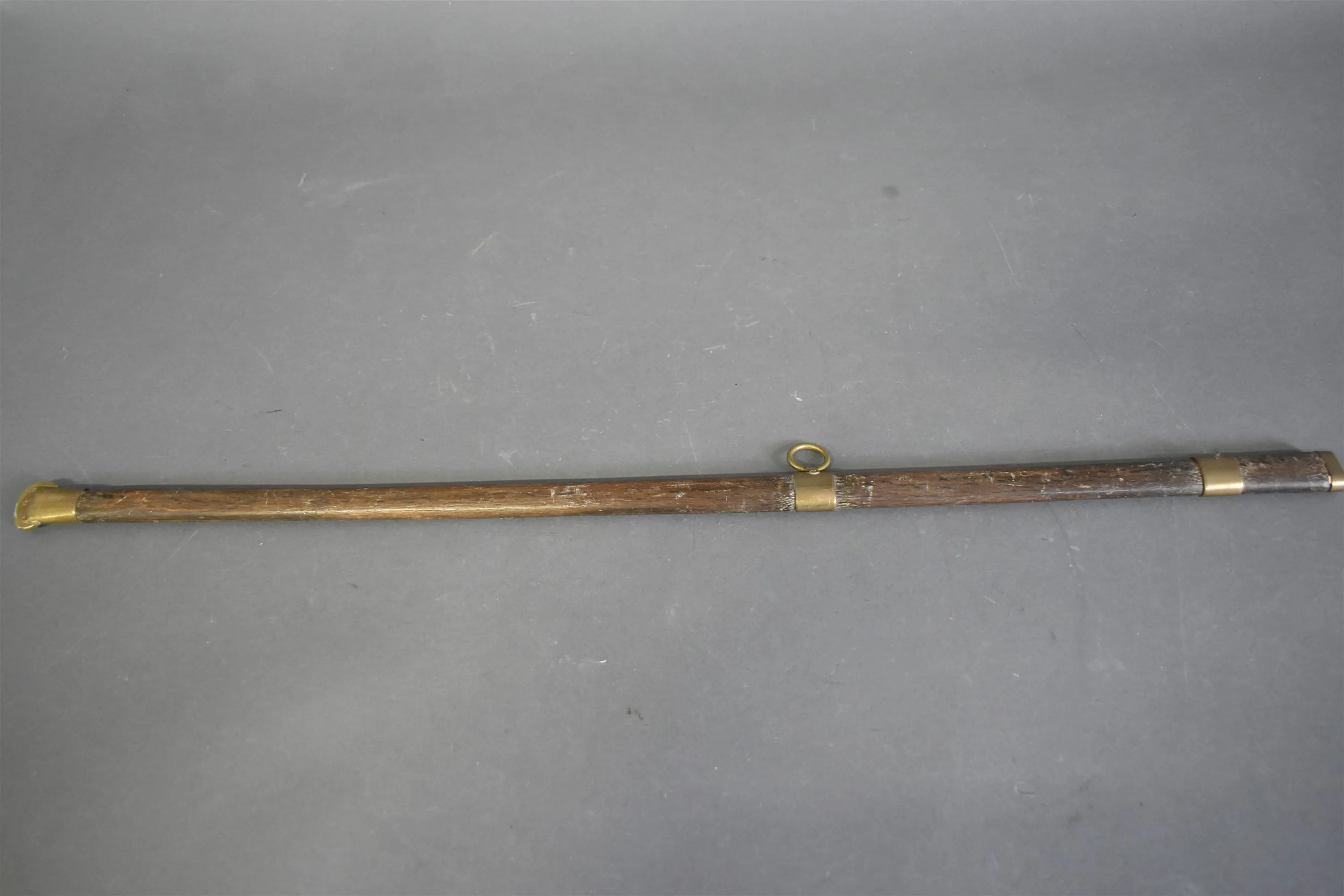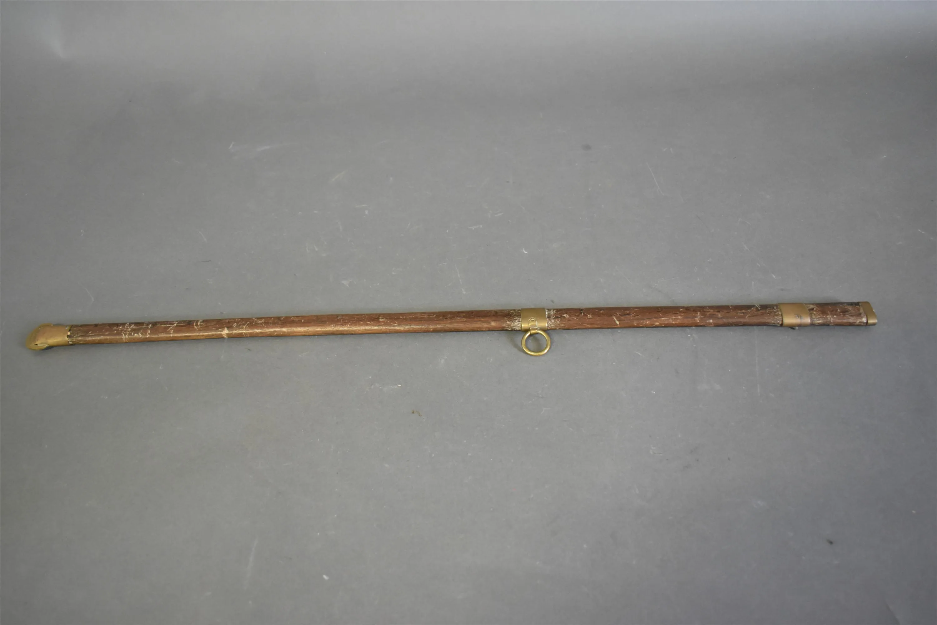 16248. Balja till värja i trä med mässingsbeslag 1800 tal, längd 88 cm