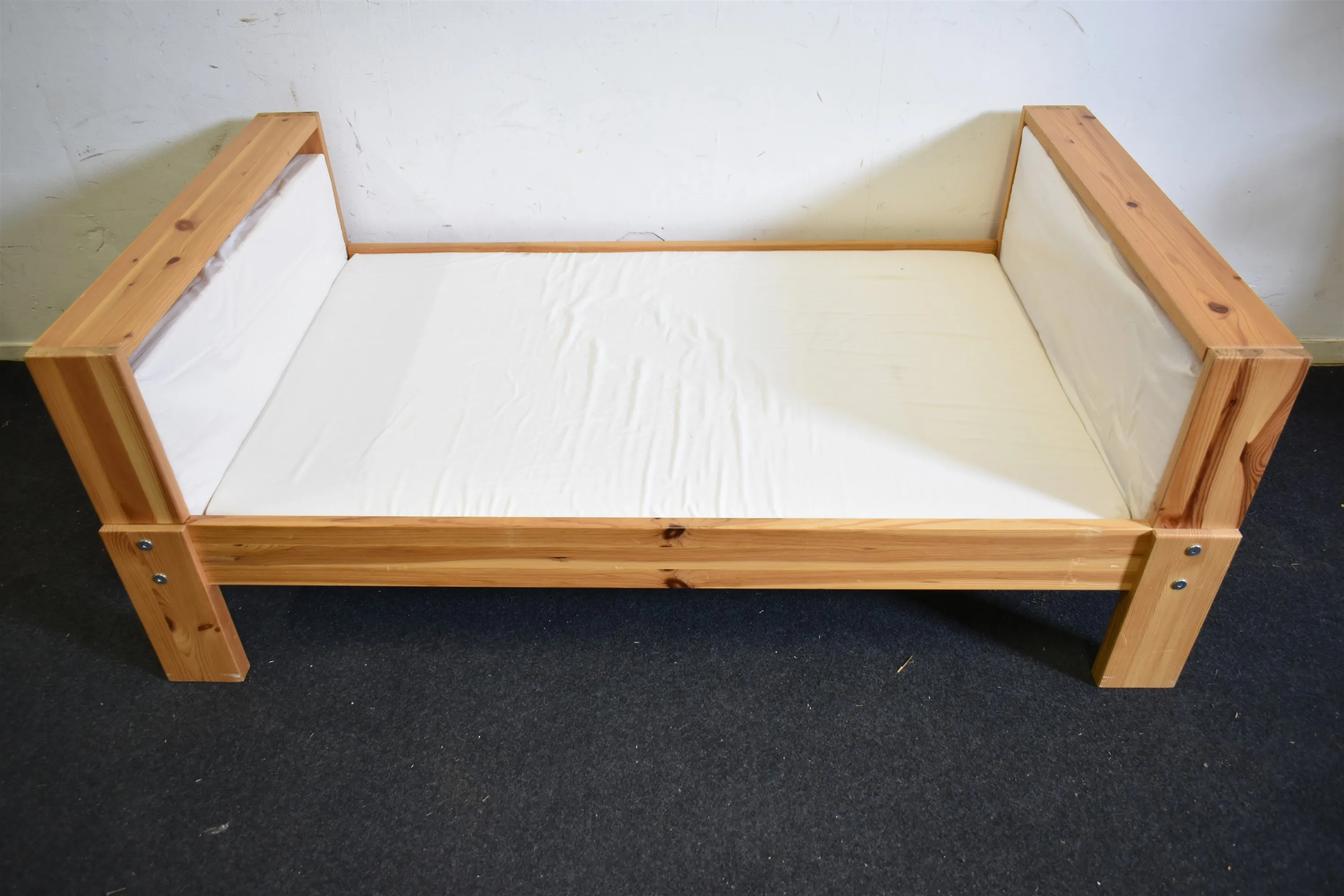15795. Barnsäng, går att montera till full längd, furu, höjd 58 cm, bredd 80 cm, längd 152-206 cm