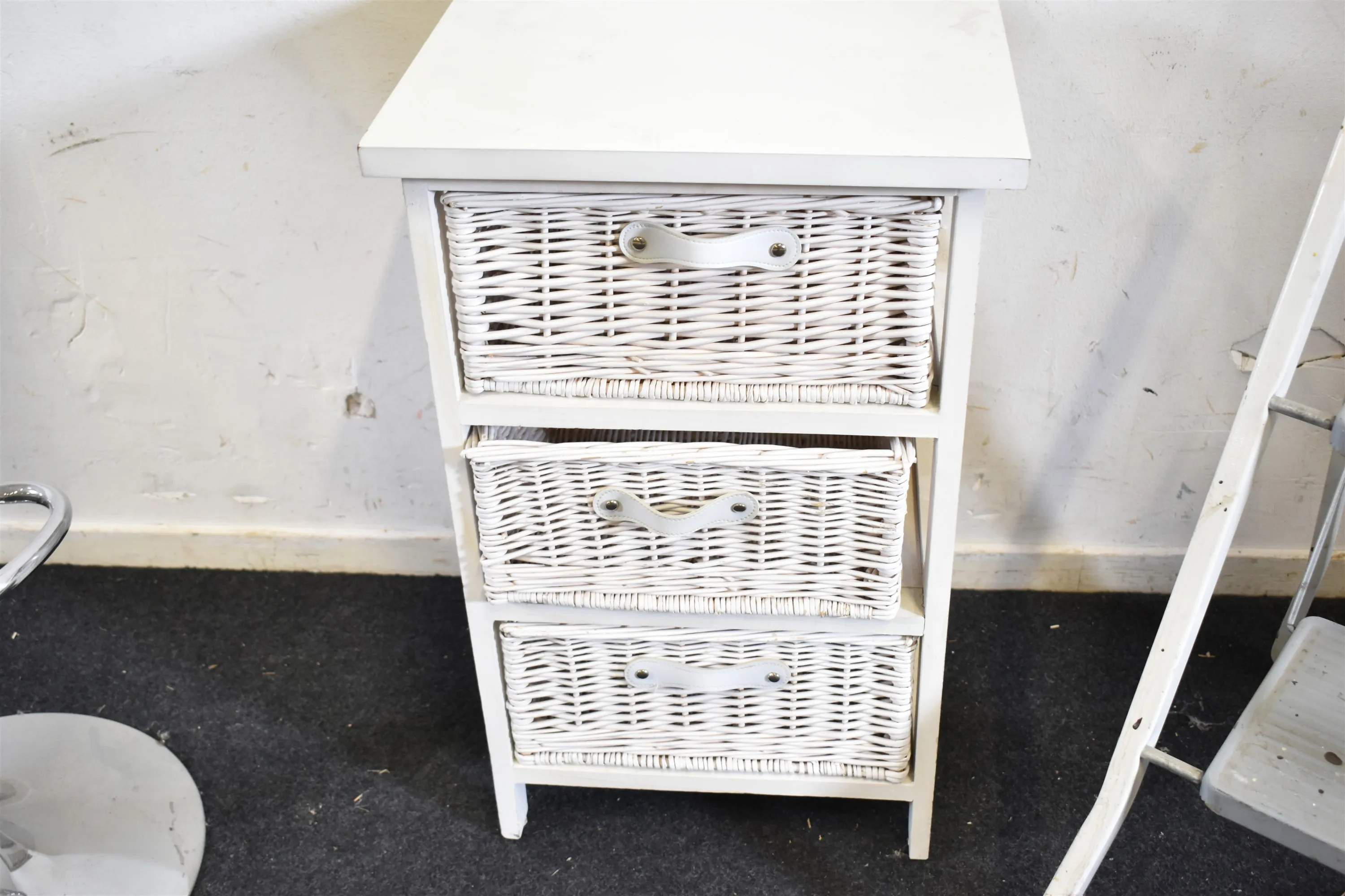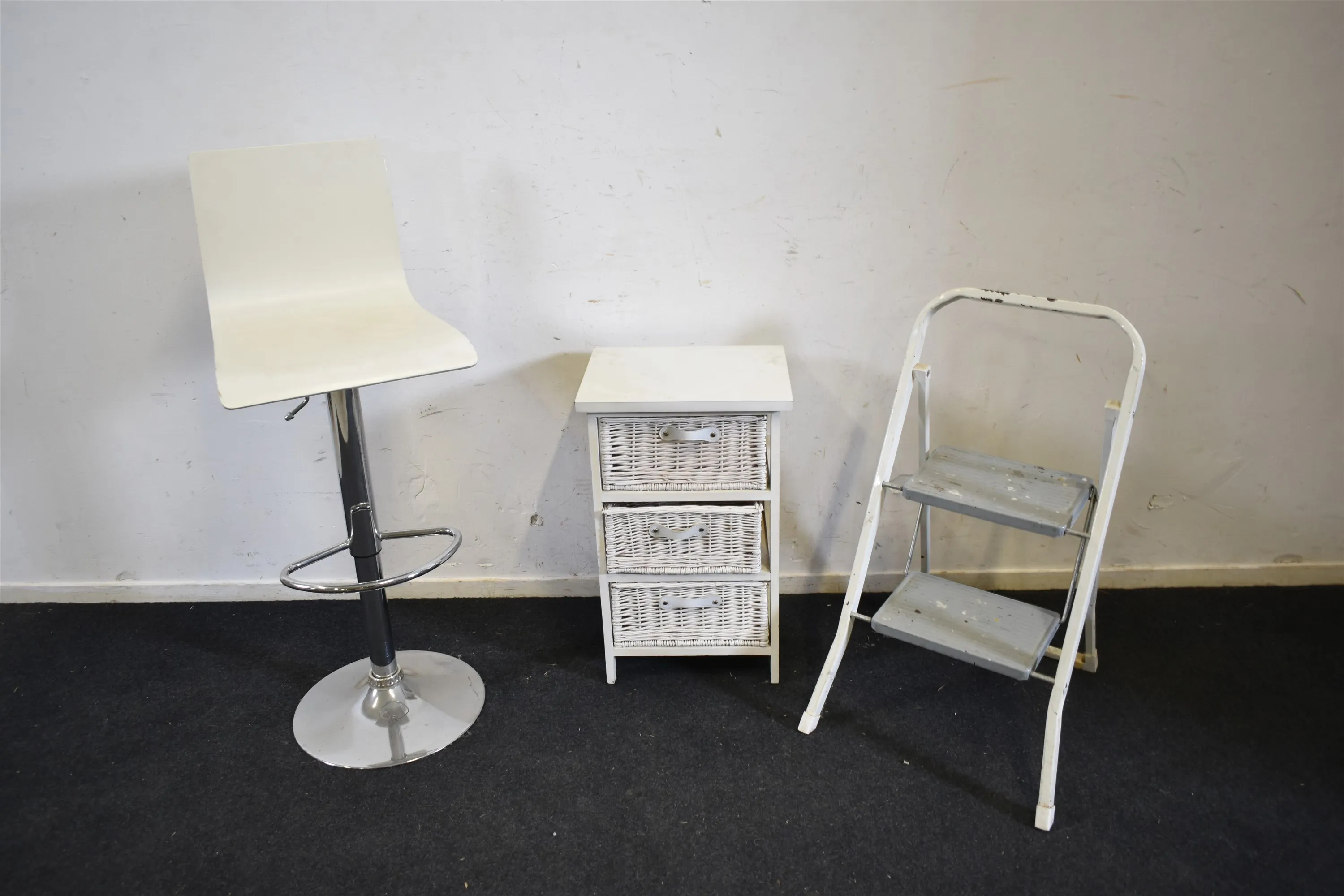 11943. Barstol, byrå med korglådor och stege 2-stegs, högsta höjd 110 cm