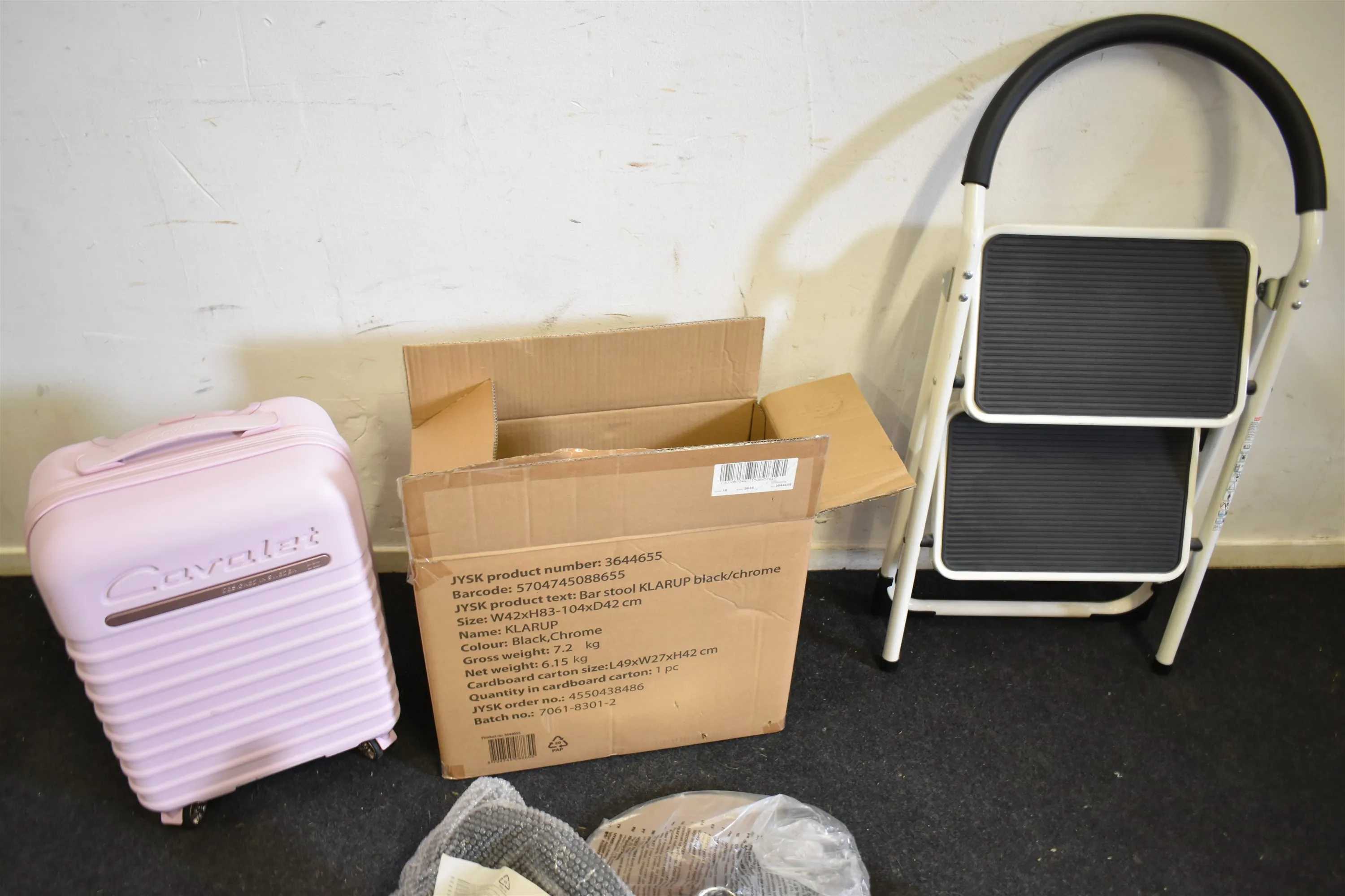 16587. Barstol ny, resväska & trappstege högsta 60 cm