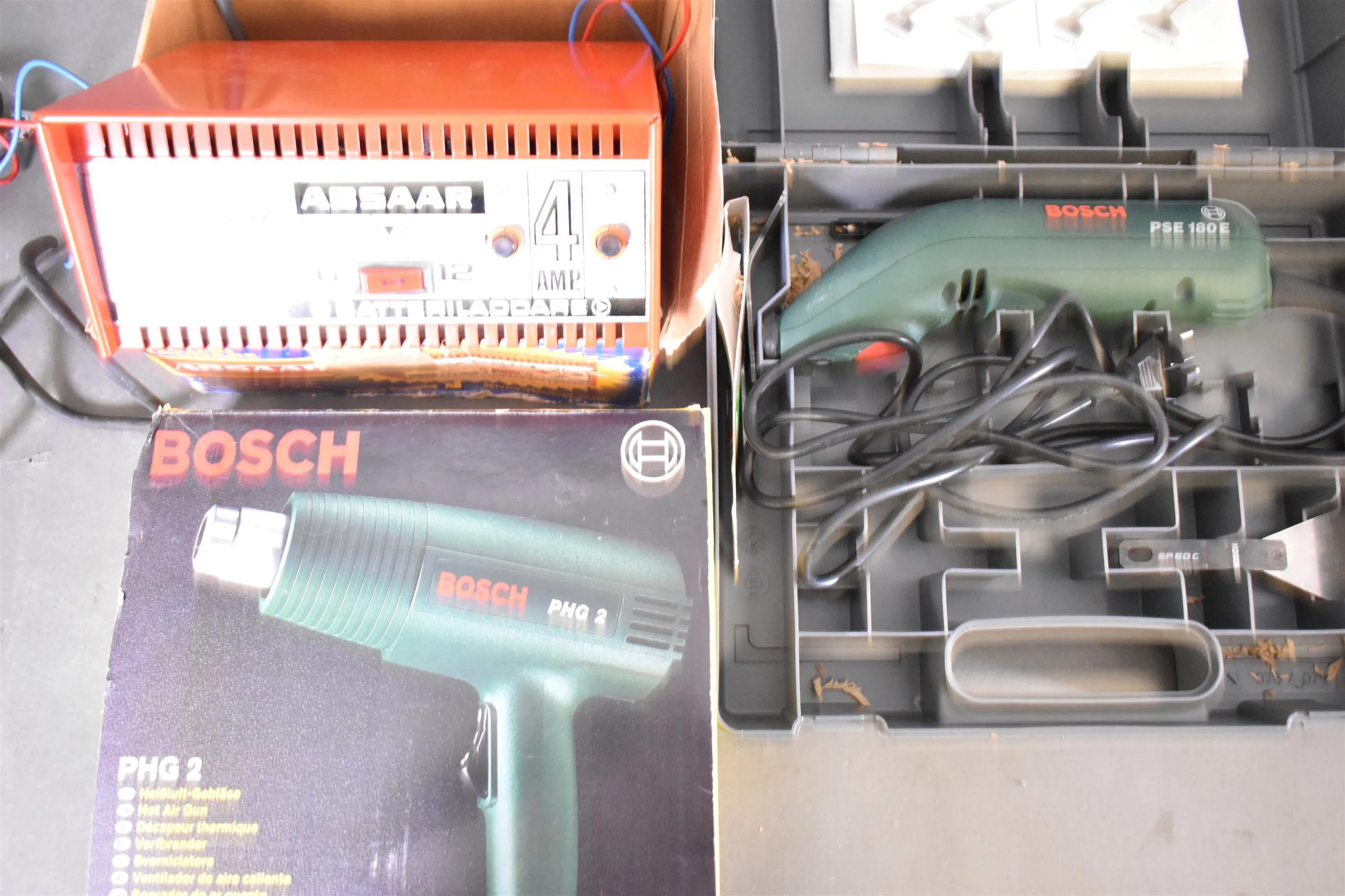 11222. Batteriladdare, värmepistol & Elskrapa, längsta 25 cm