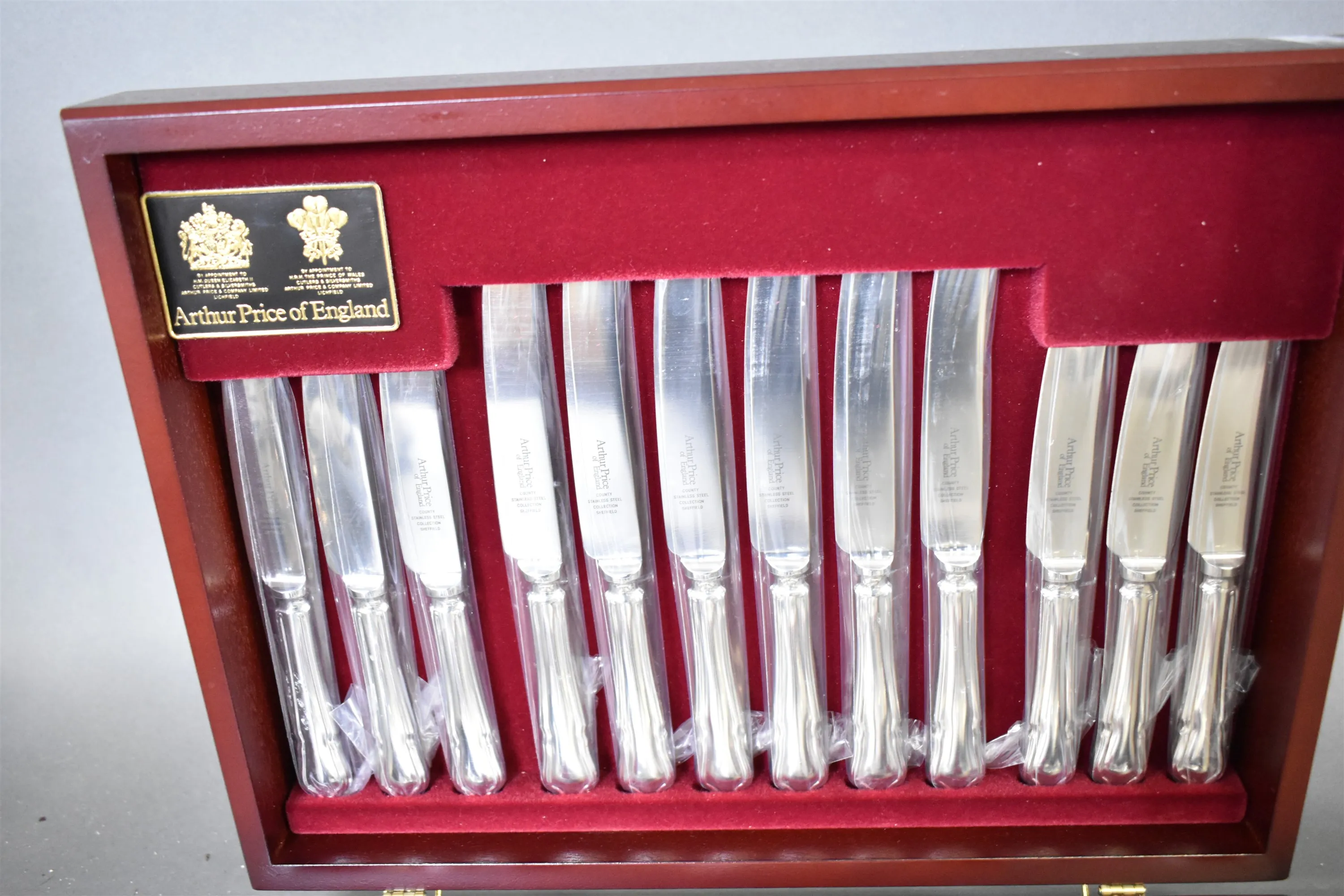 14584. Bestickuppsättning i etui, Arthur Price of England, mått etui 39 x 29 cm