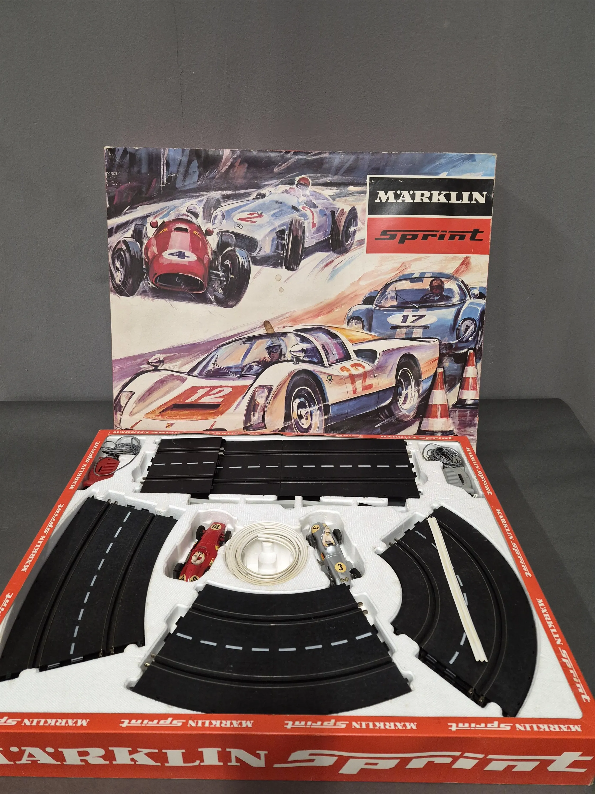17975. Bilbana Märklin Sprint 1409, med låda, ej testad, längd på låda 66 cm