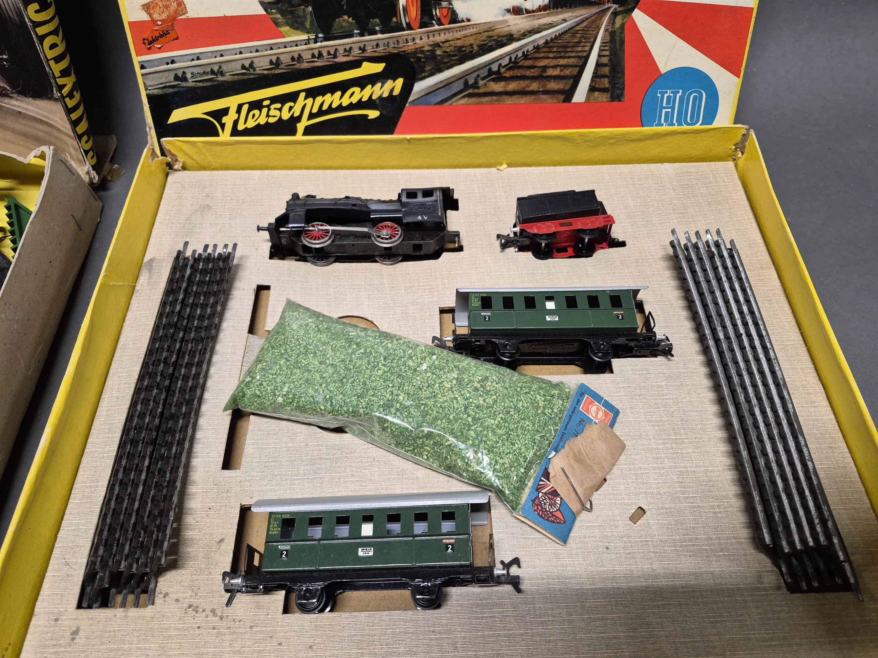 18610. Bilbana Scalextric, modelltågdelar Fleschmann och tomlådor Märklin 2 s, ej testat, längsta mått 42 cm