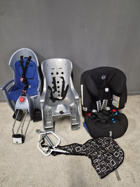 17432. Bilbarnstol Volvo/Britax, hoppgunga och cykelstolar 2 st
