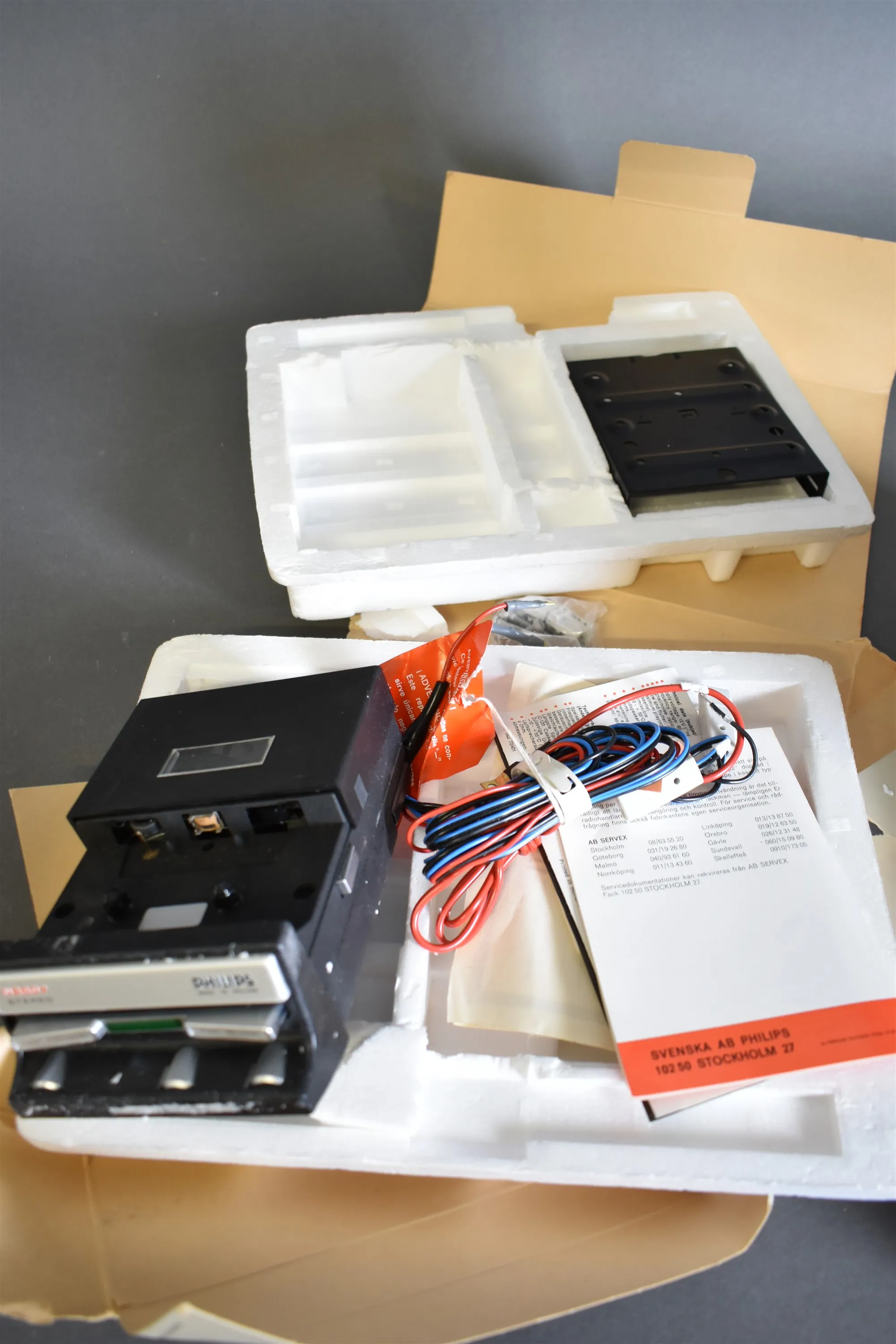 14542. Bilcassettspelare Philips & högtalare Albe 1 par, oanvända längsta låda 32 cm