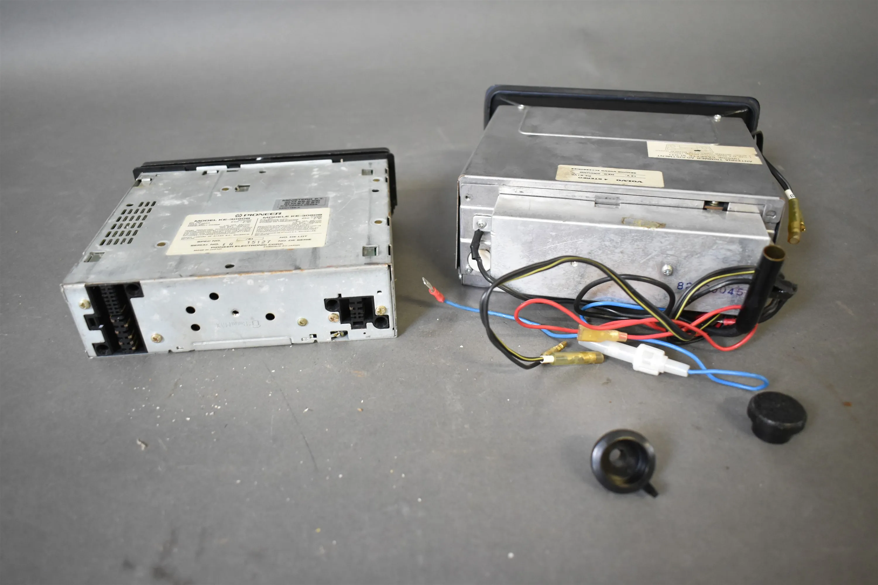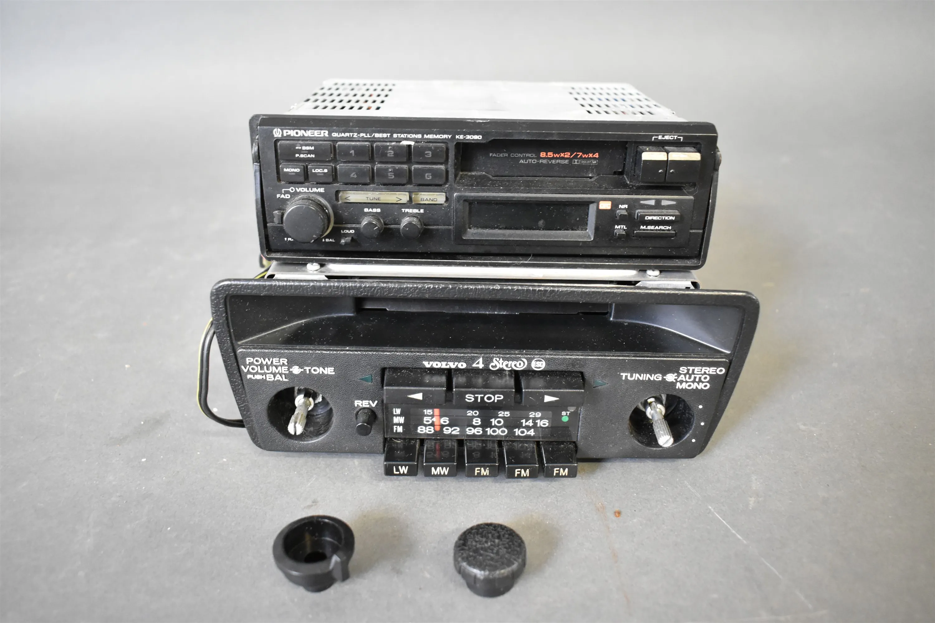 16186. Bilstereo, 2 st Pioneer & Volvo ett vred passar ej, största mått 21 x 9 cm, djup 20.5 cm