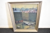9041. Birger Mörk olja på pannå, Stadsmotiv, mått 60 x 72 cm
