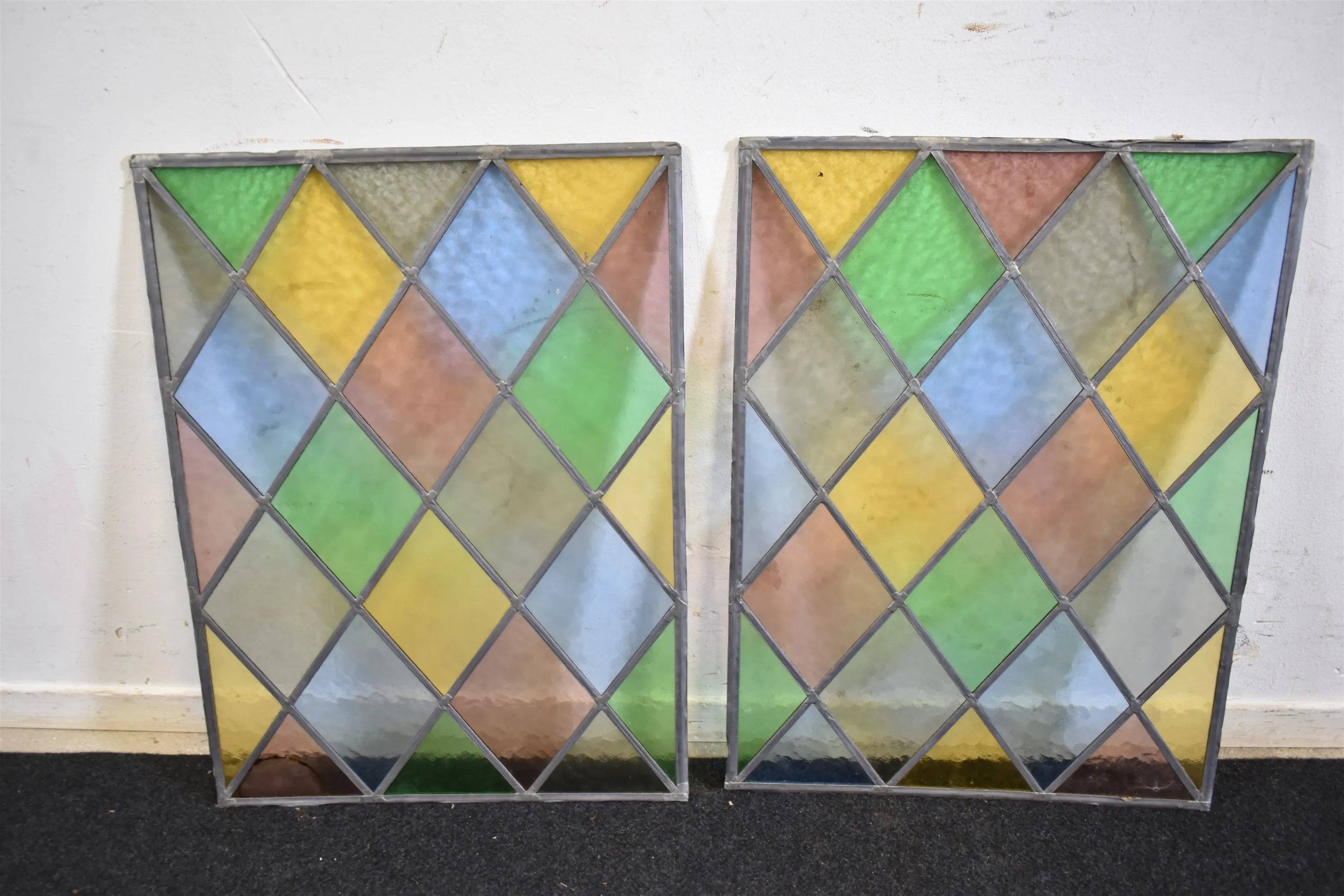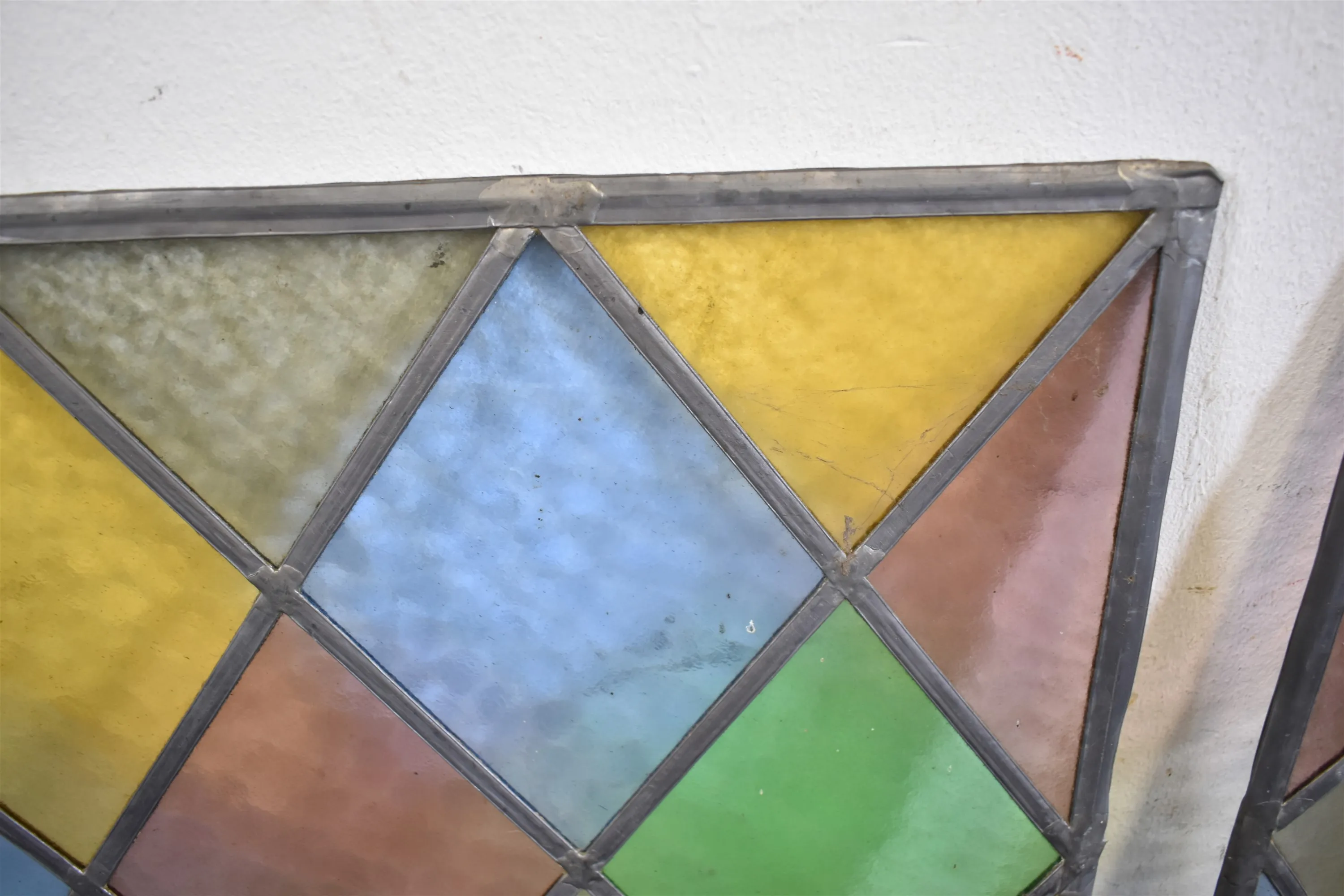 15643. Blyinfattade glas 2 st, tonat glas, mått 65x48 cm