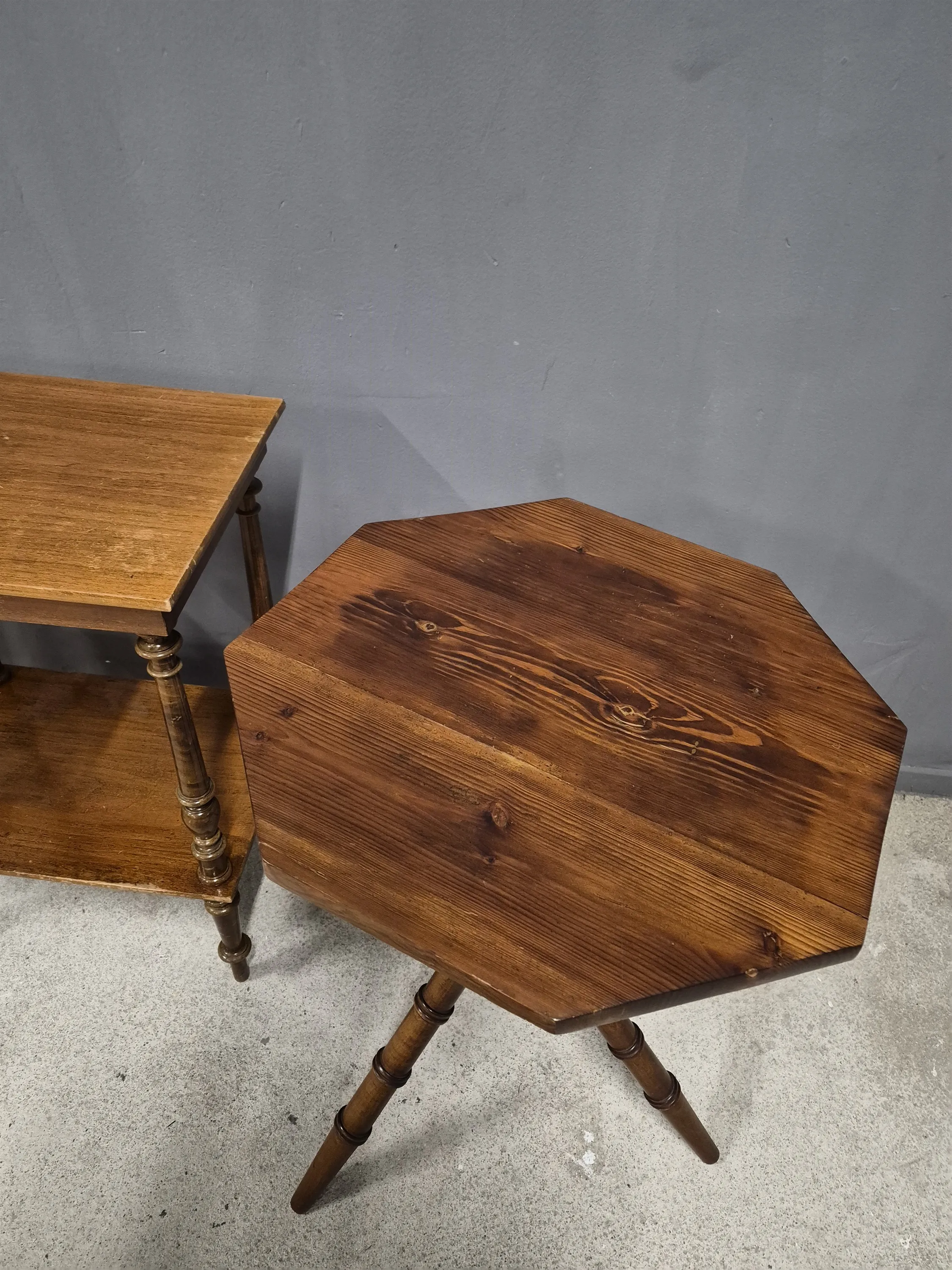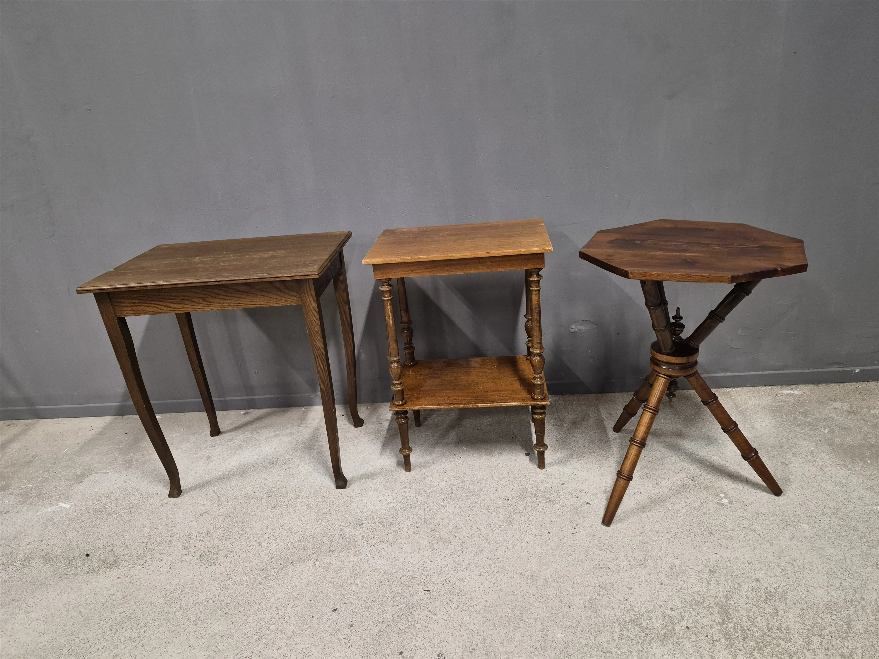 17362. Bord 3 st bla fönsterbord, högsta höjd 76 cm