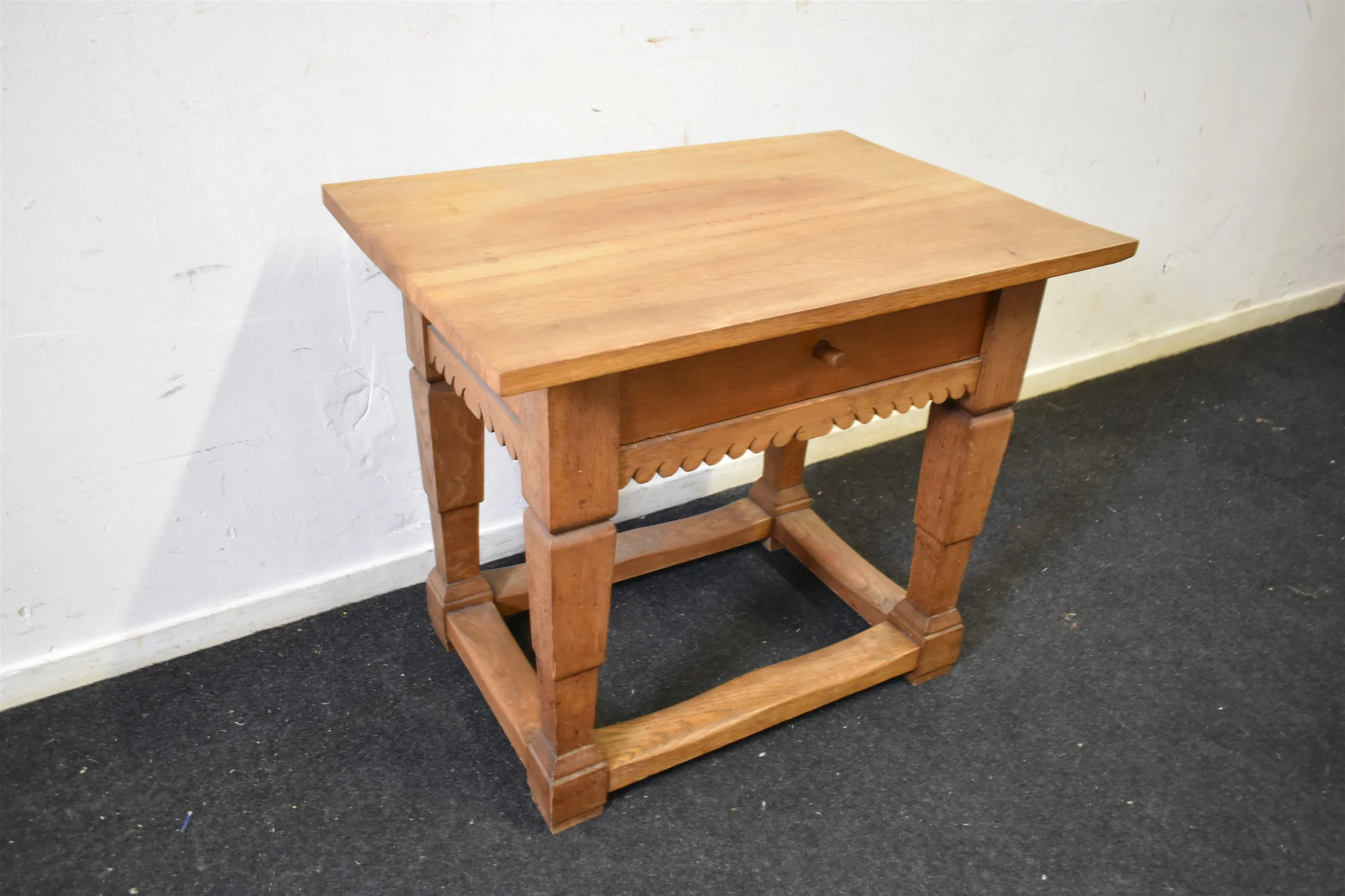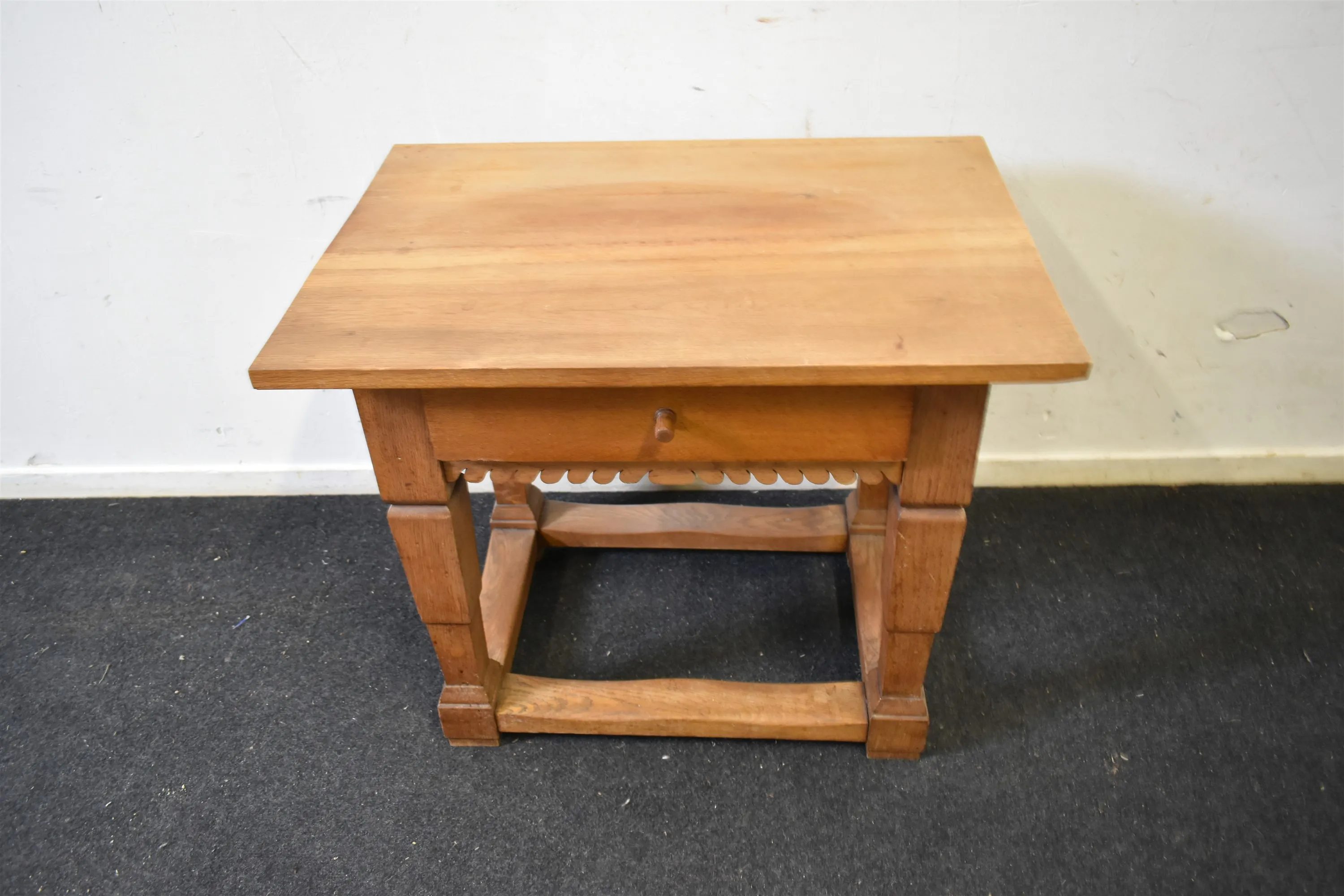 11480. Bord med låda, ek, höjd 63 cm, mått 72 x 50 cm