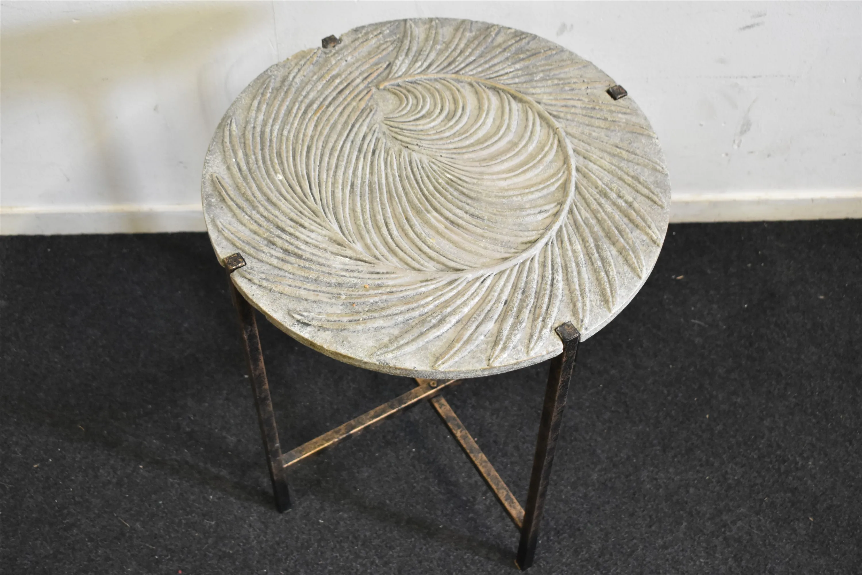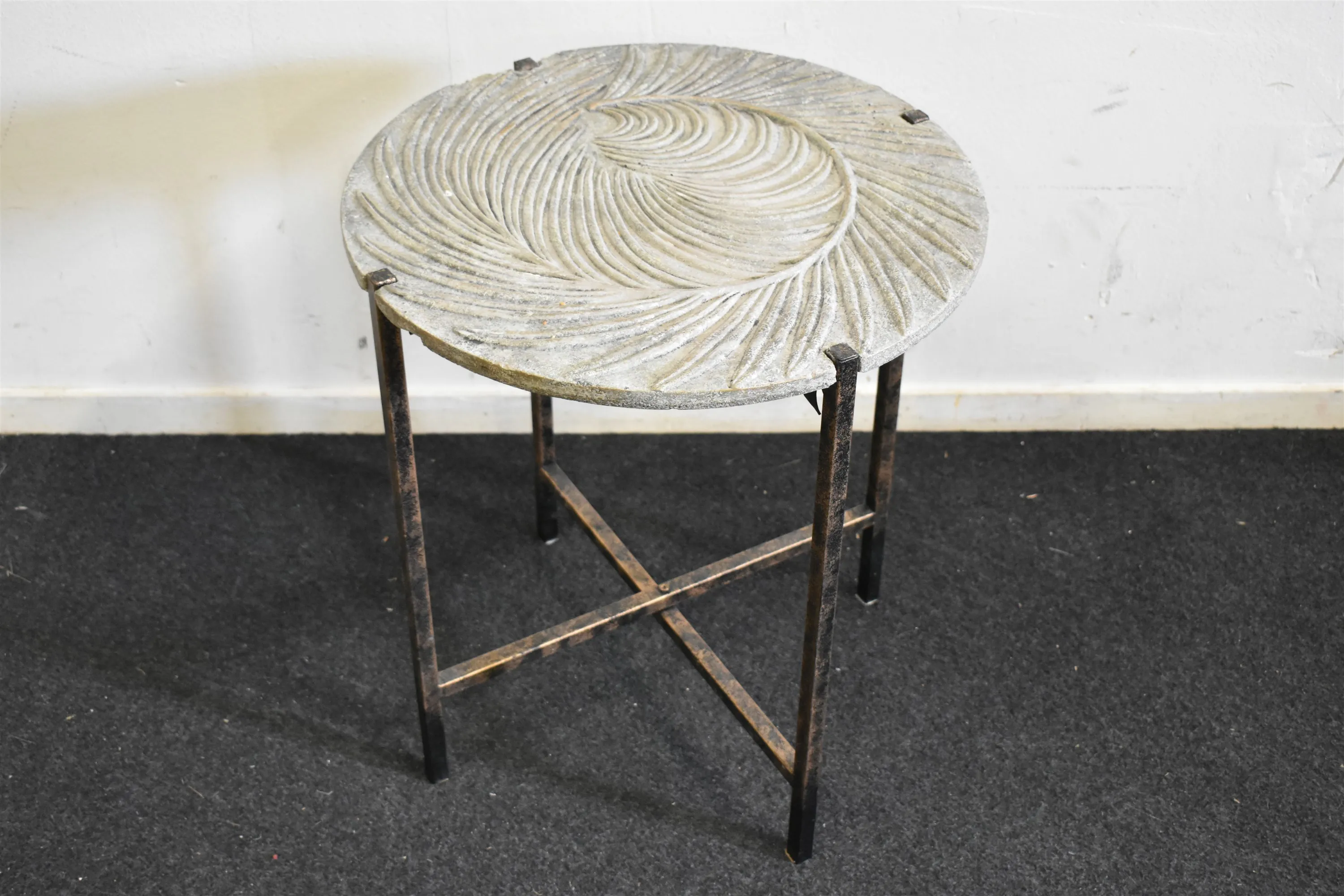 16708. Bord med stenskiva, metallben, diameter 45 cm