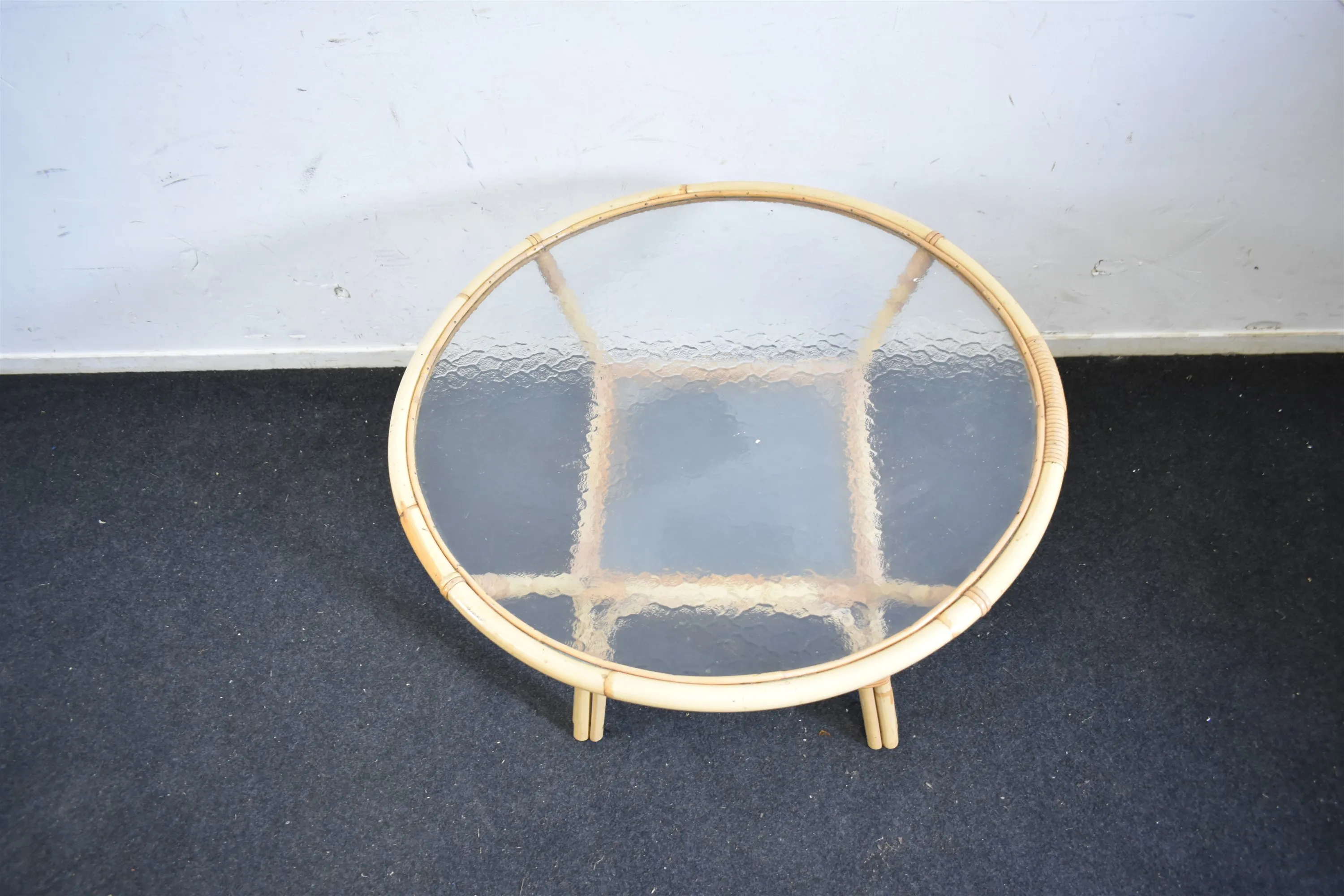 12547. Bord, rotting, råglasskiva, höjd 56 cm, diameter 80 cm