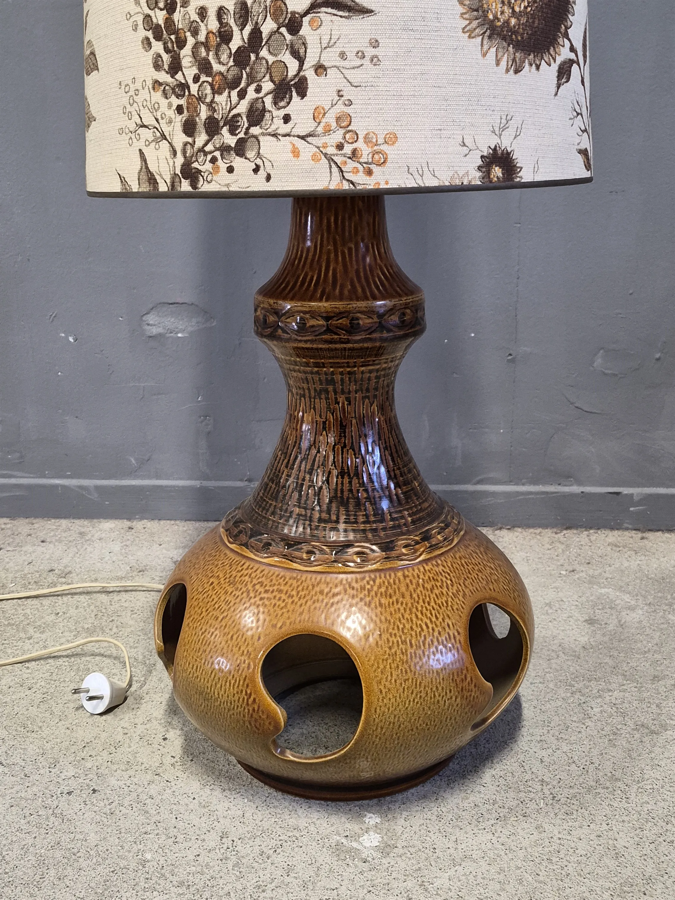 19779. Bords/golvlampa, keramik, invändig belysning i foten, W.Germany, höjd 127 cm