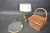 9410. Bordslampa i mässing, korg och spegel retro, högsta höjd 40 cm