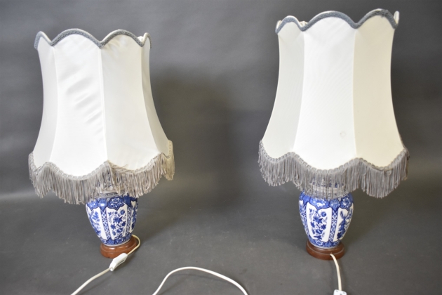 16307. Bordslampor, 1 par keramik/träsockel, höjd 60 cm