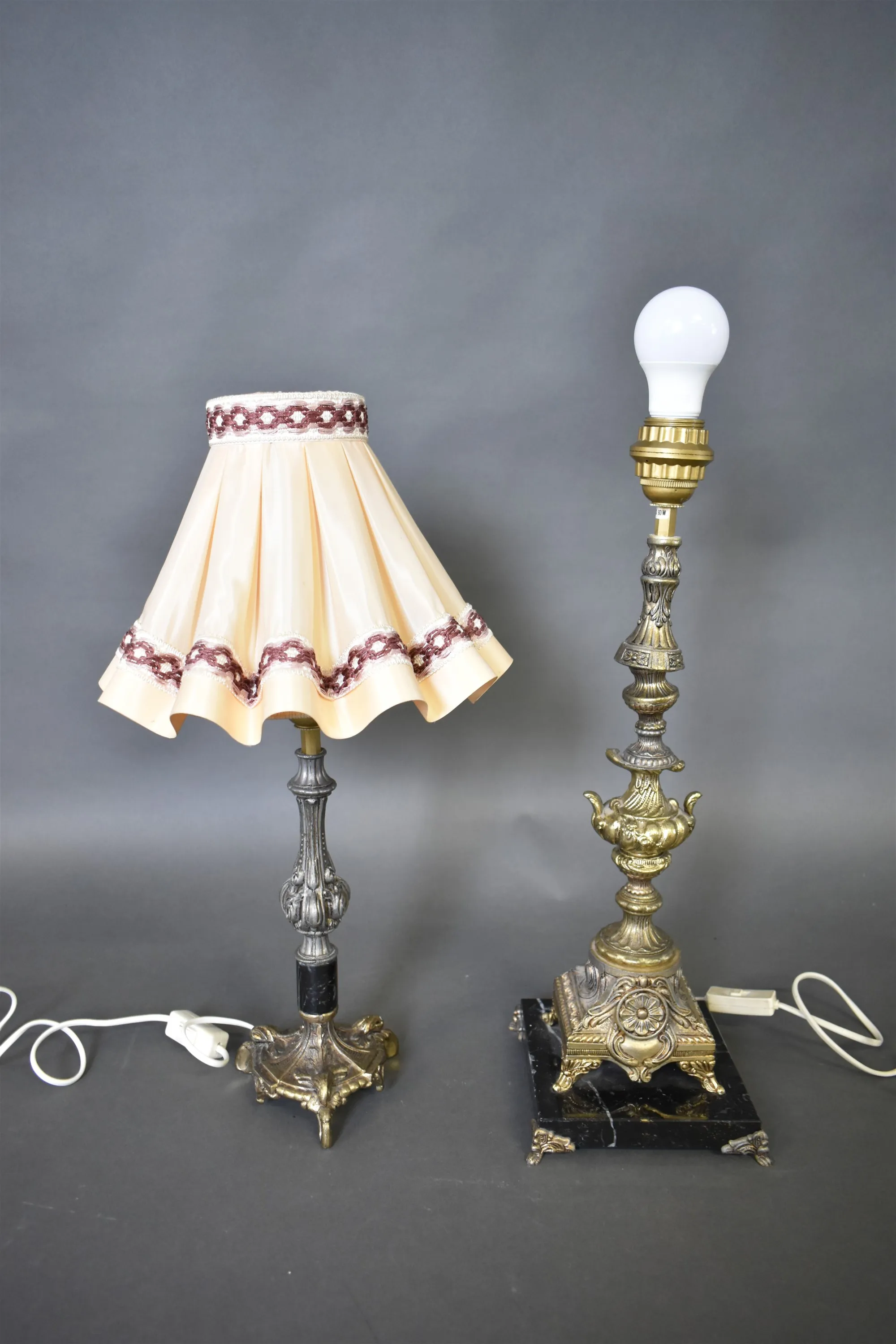 15158. Bordslampor 2 st bla mässing, högsta höjd 59 cm
