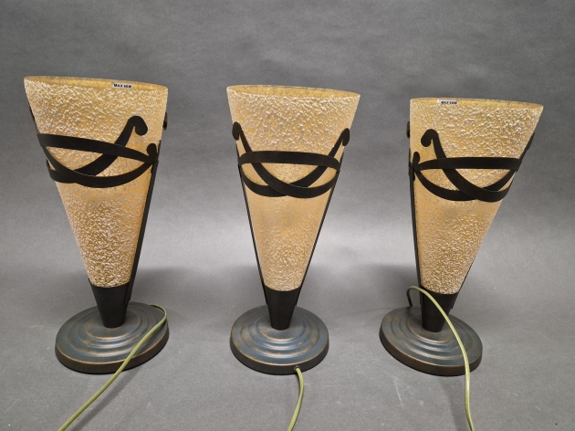 18265. Bordslampor 3 st Jugendstil, strutform, högsta 39 cm
