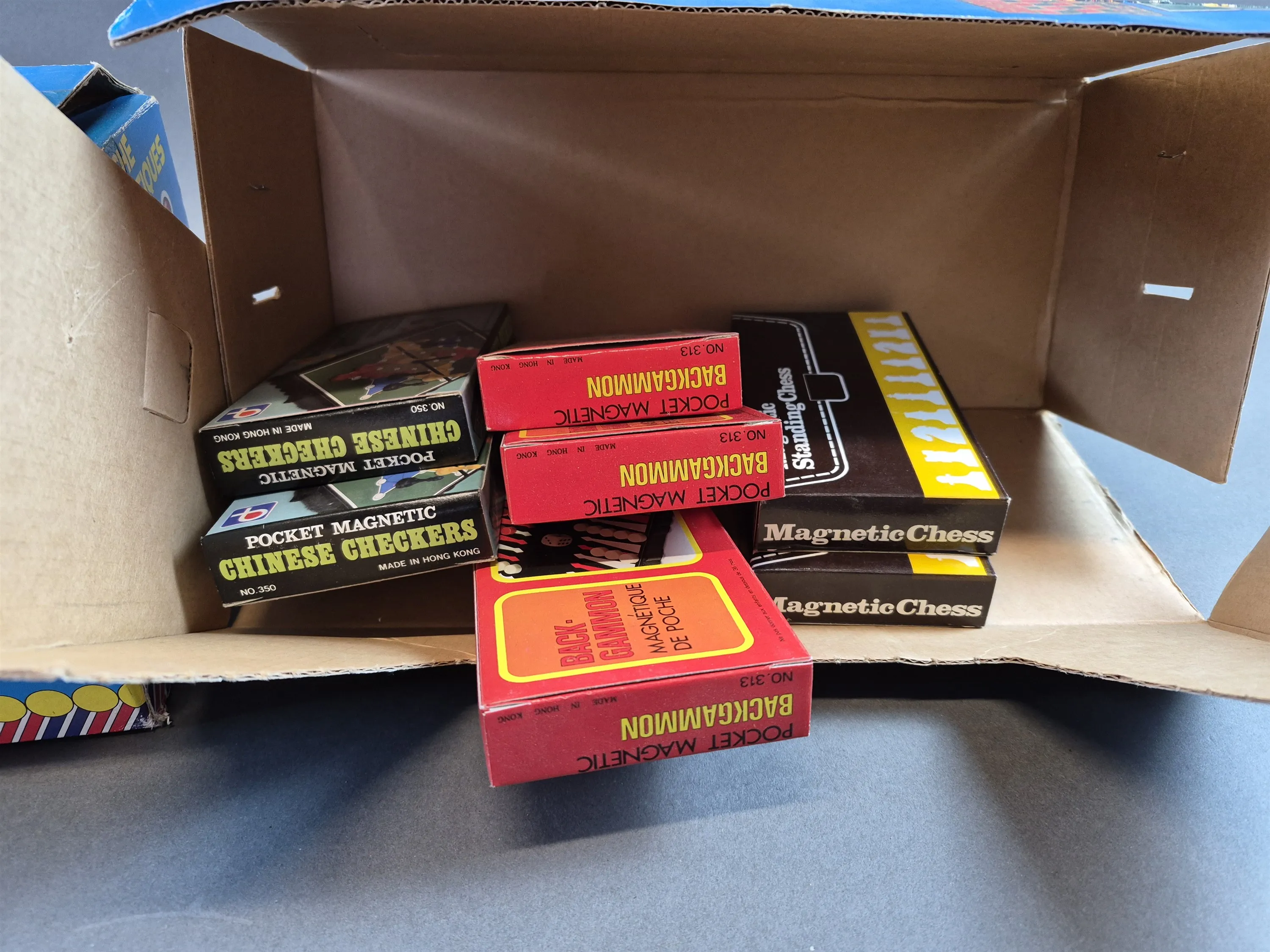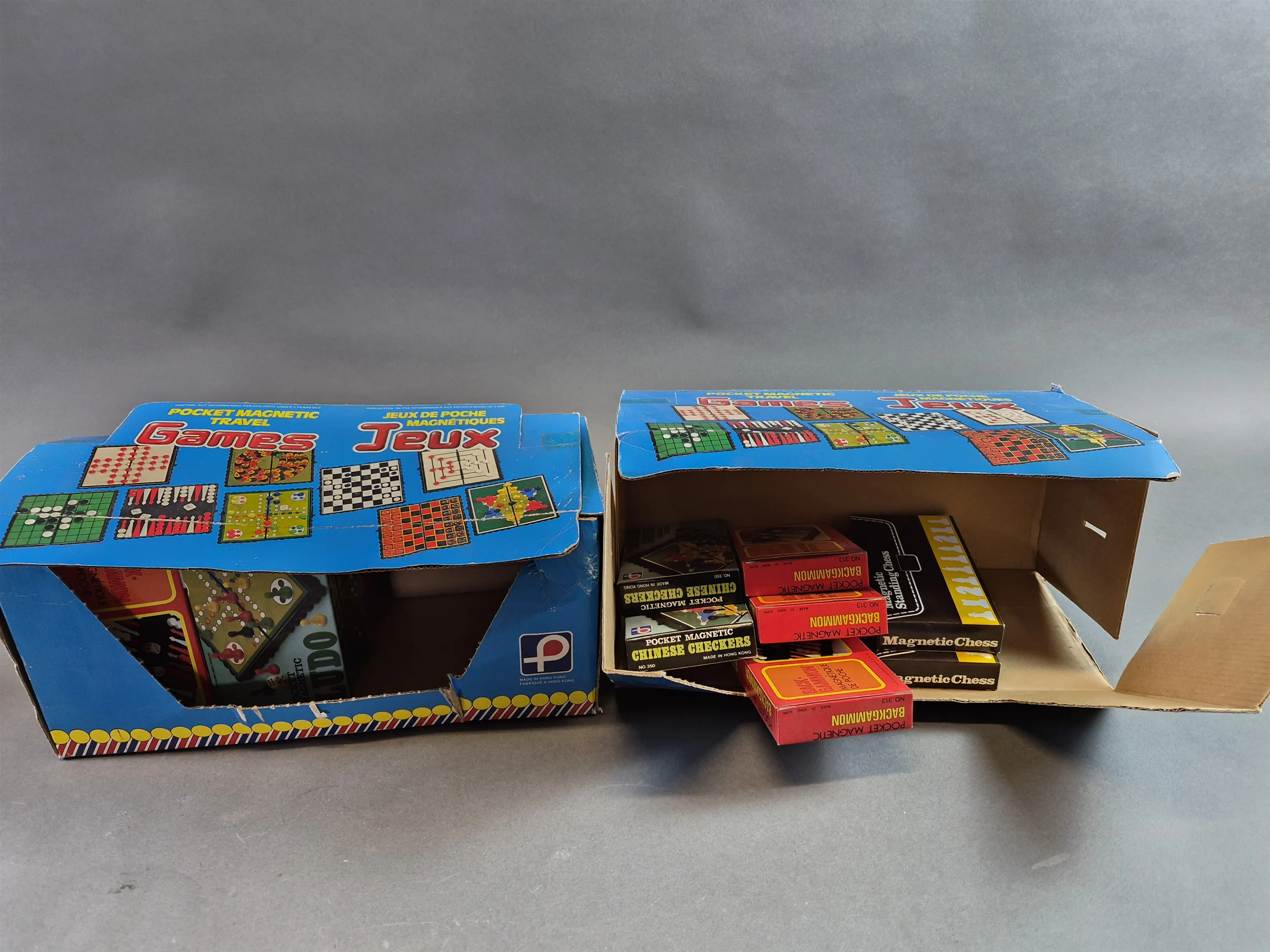 20173. Boxar 2 st med magnetiska småspel bla Backgammon, längsta mått 33 cm