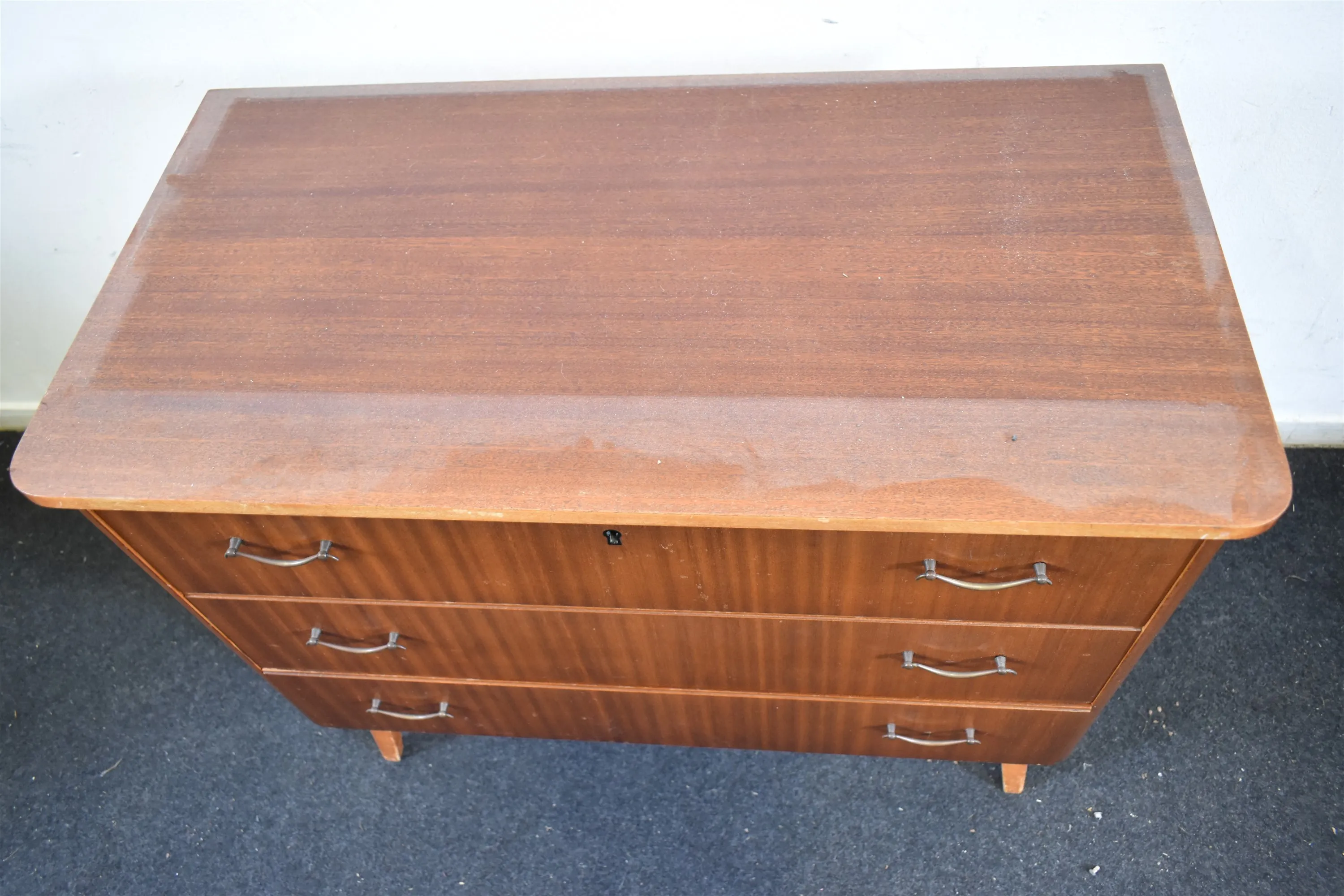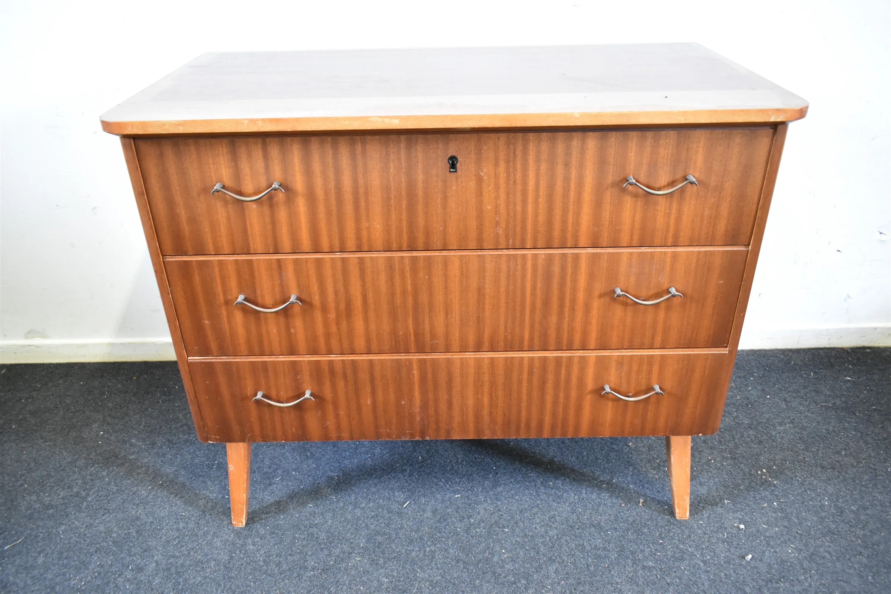 11827. Byrå 3 lådor, mindre fanerskada på en låda, höjd 66 cm, längd 80 cm, djup 41 cm
