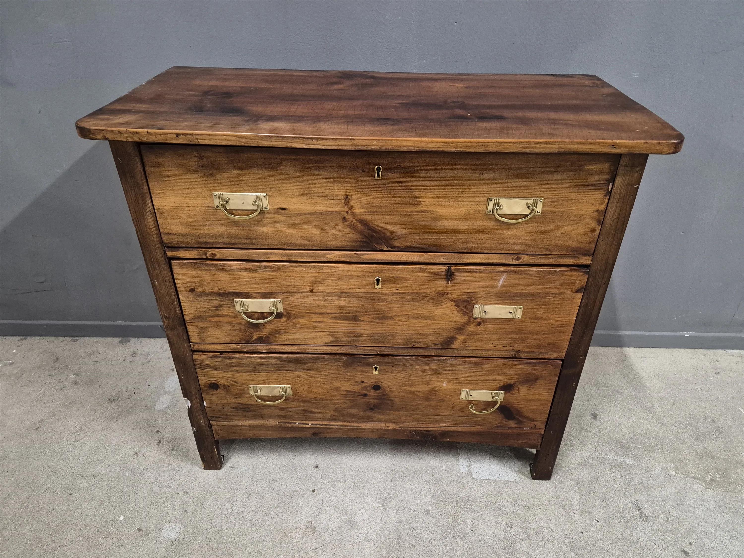 19050. Byrå betsad furu, höjd 84 cm, bredd 90 cm djup 44 cm