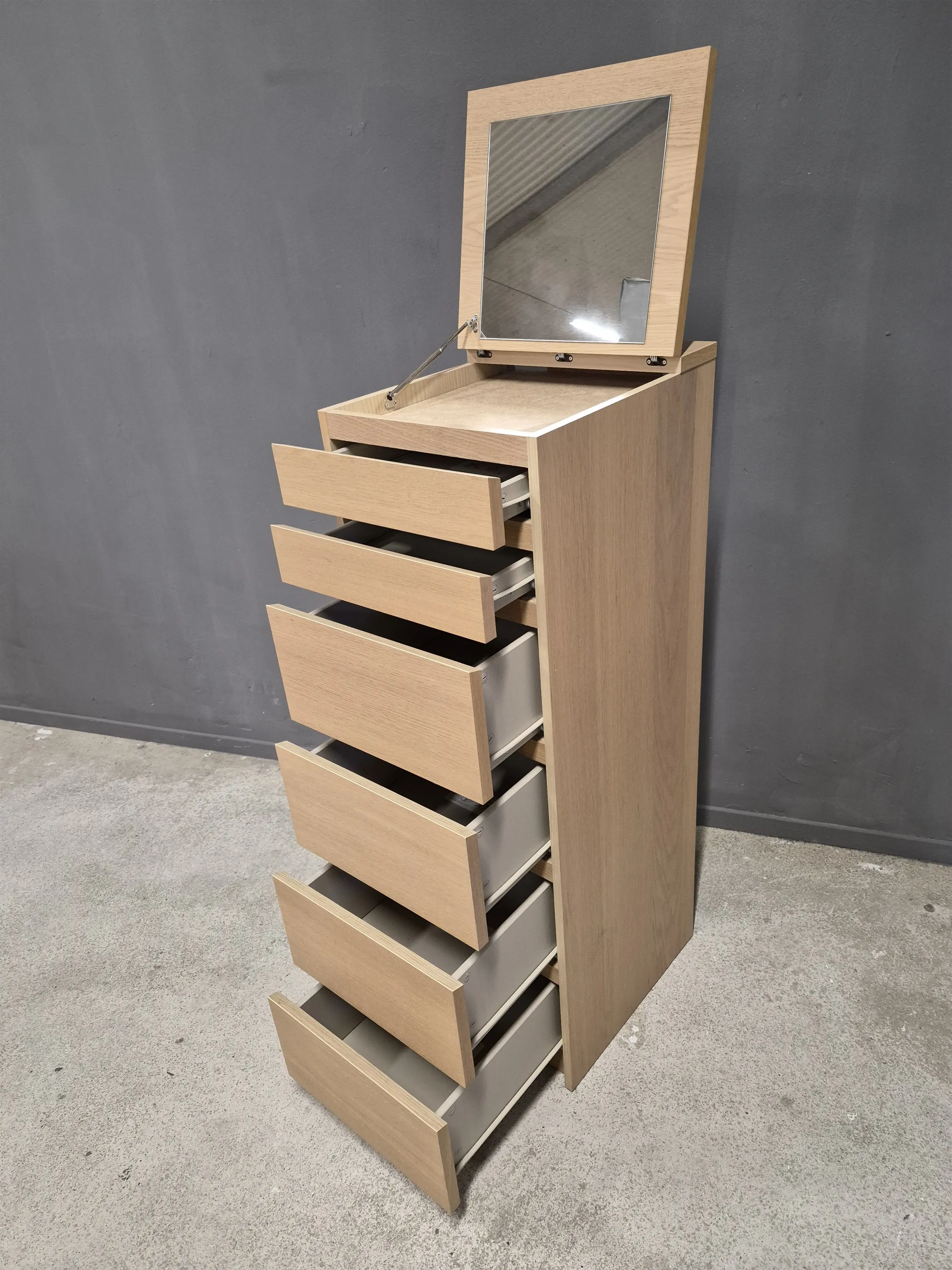 16892. Byrå eklaminat, spegel under lock, höjd 124 cm, bredd 40 cm, djup 49 cm