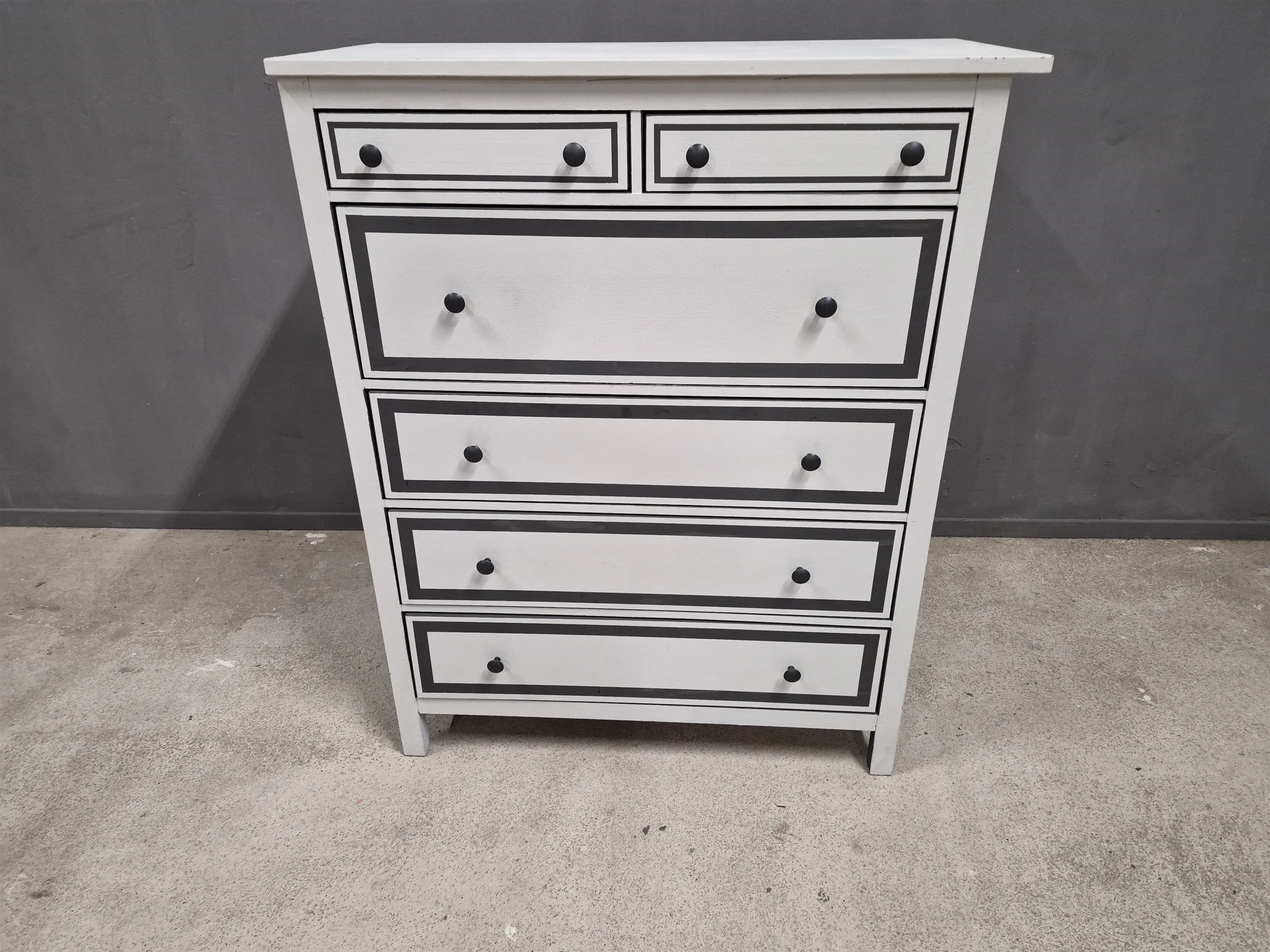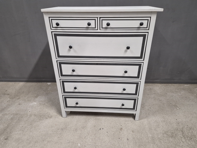 17492. Byrå furu målad dekor, höjd 134 cm, bredd 104 cm, bredd 50 cm