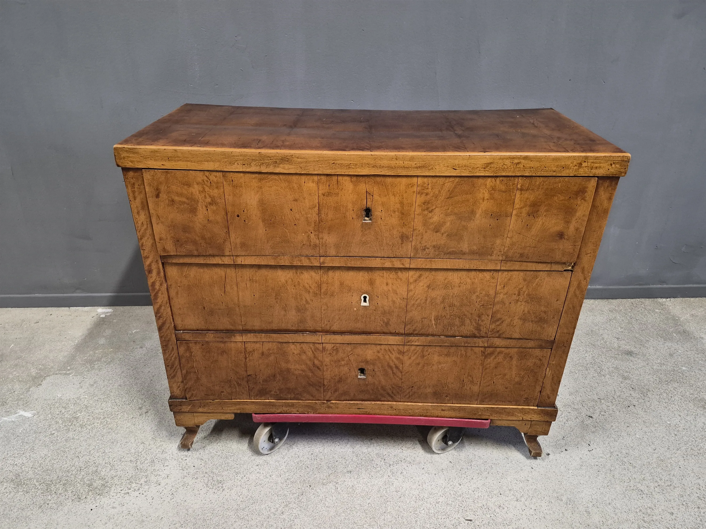 16913. Byrå ljus björk, 1800 tal, nyckelskyltar saknas höjd 85 cm, bredd 100 cm, djup 45 cm fanerbit saknas